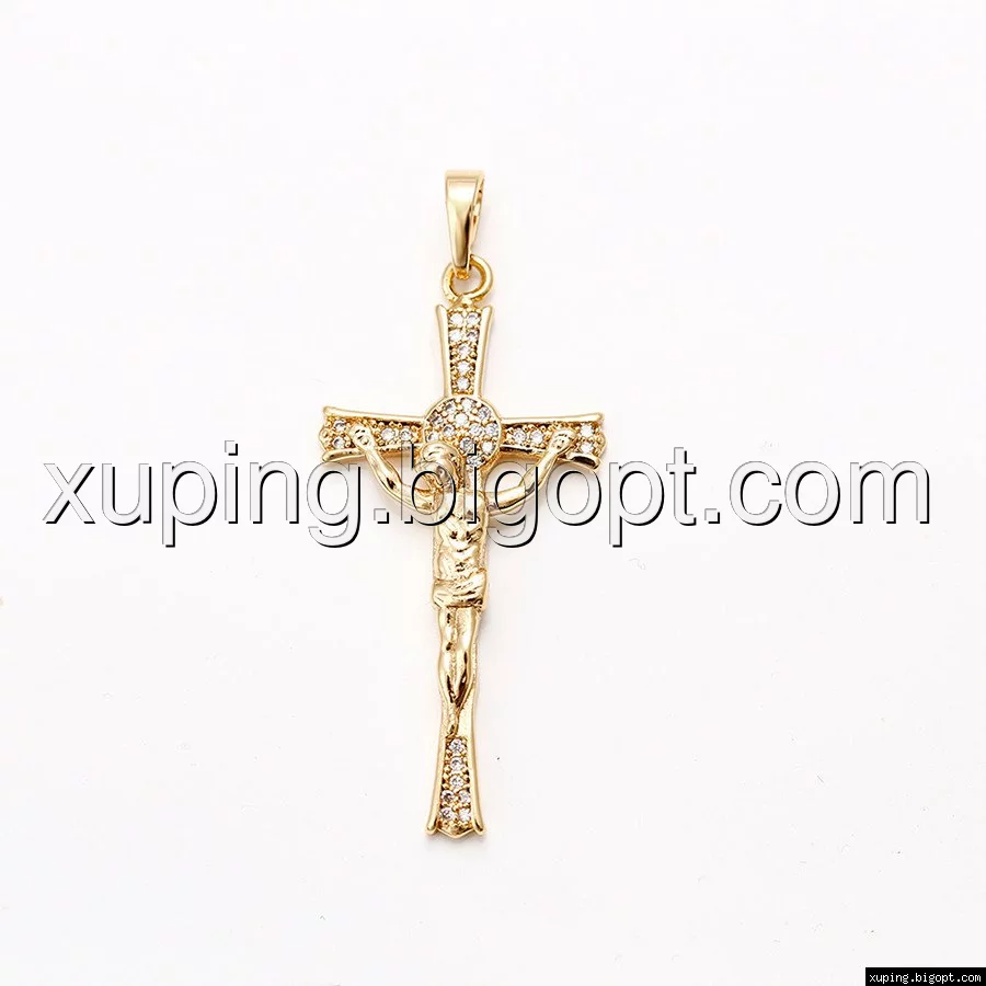 Крест с распятием, Россыпь циркония, позолота