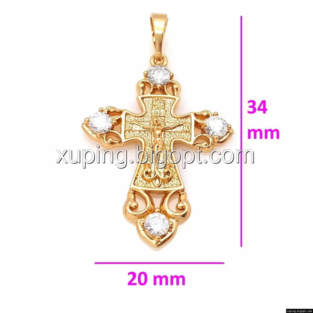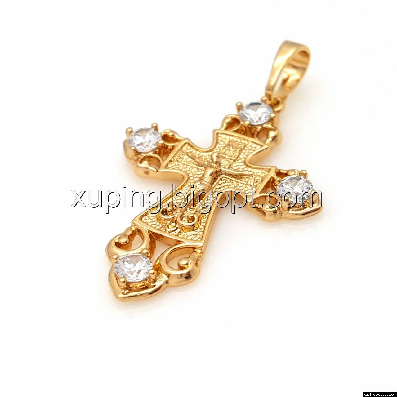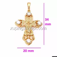 Крест с распятием, вставка цирконий, позолота Xuping