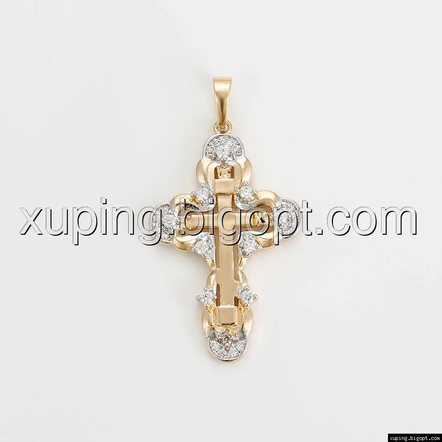 Крест с цирконием, позолота+родий
