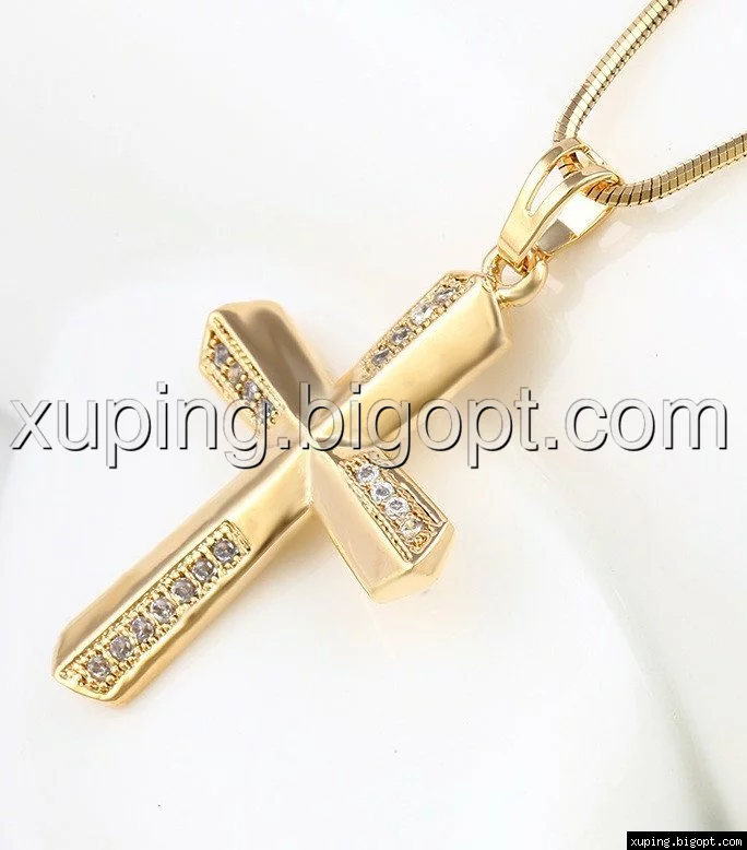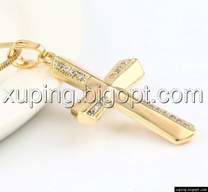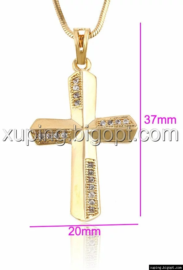 Крестик 4 дорожки циркония, позолота