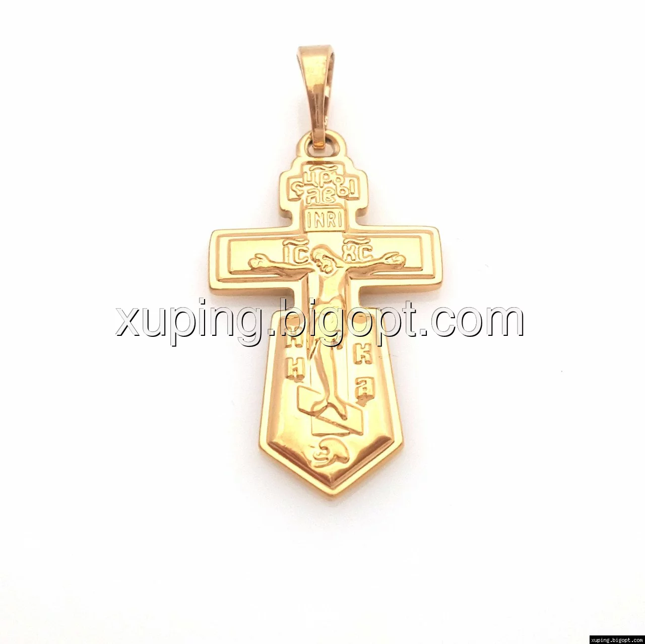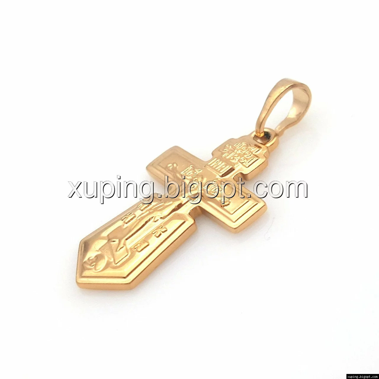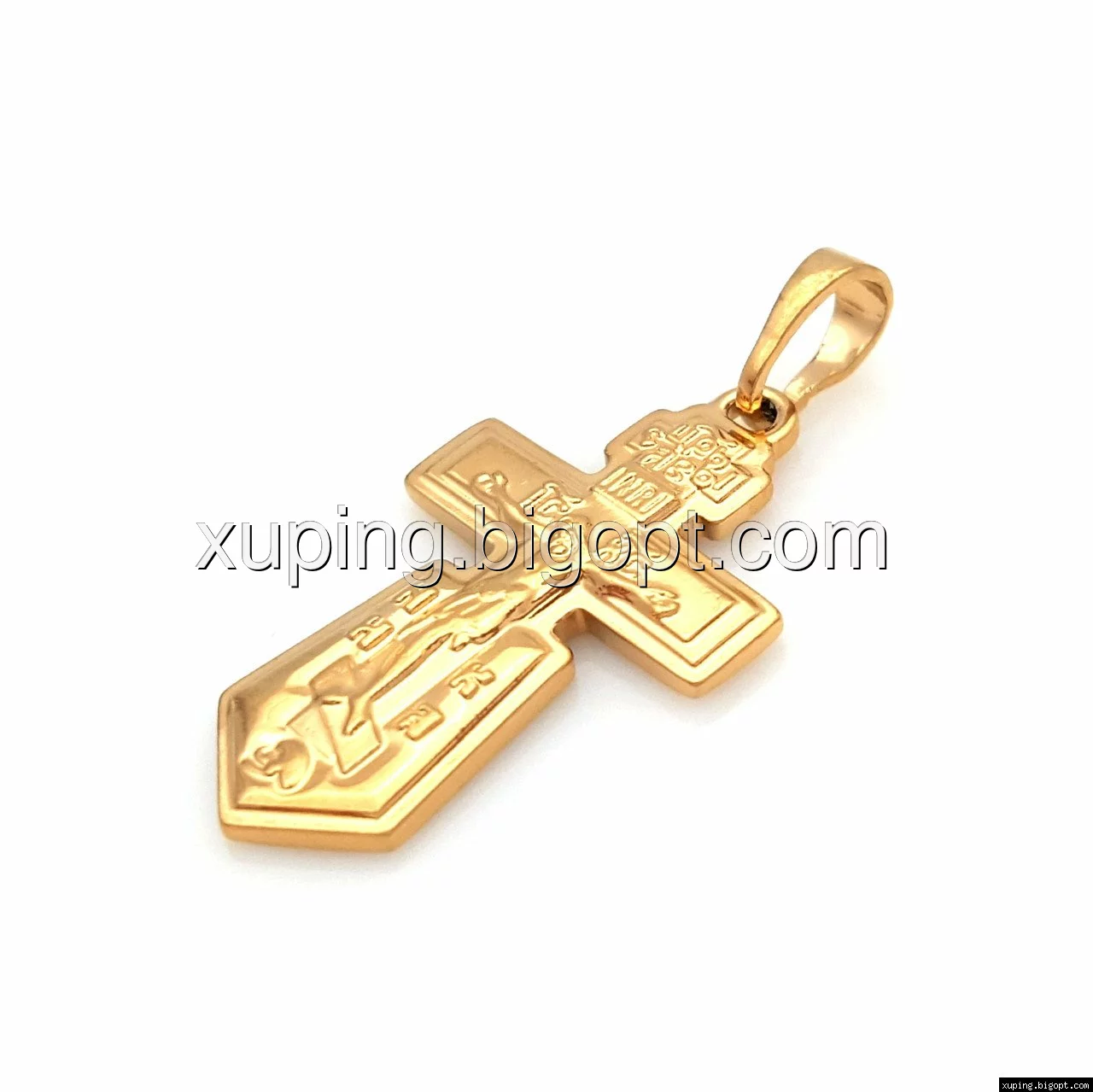 Хрестик фігурний, позолота, без каменів, з розп'яттям
