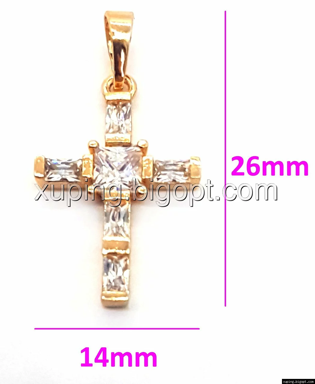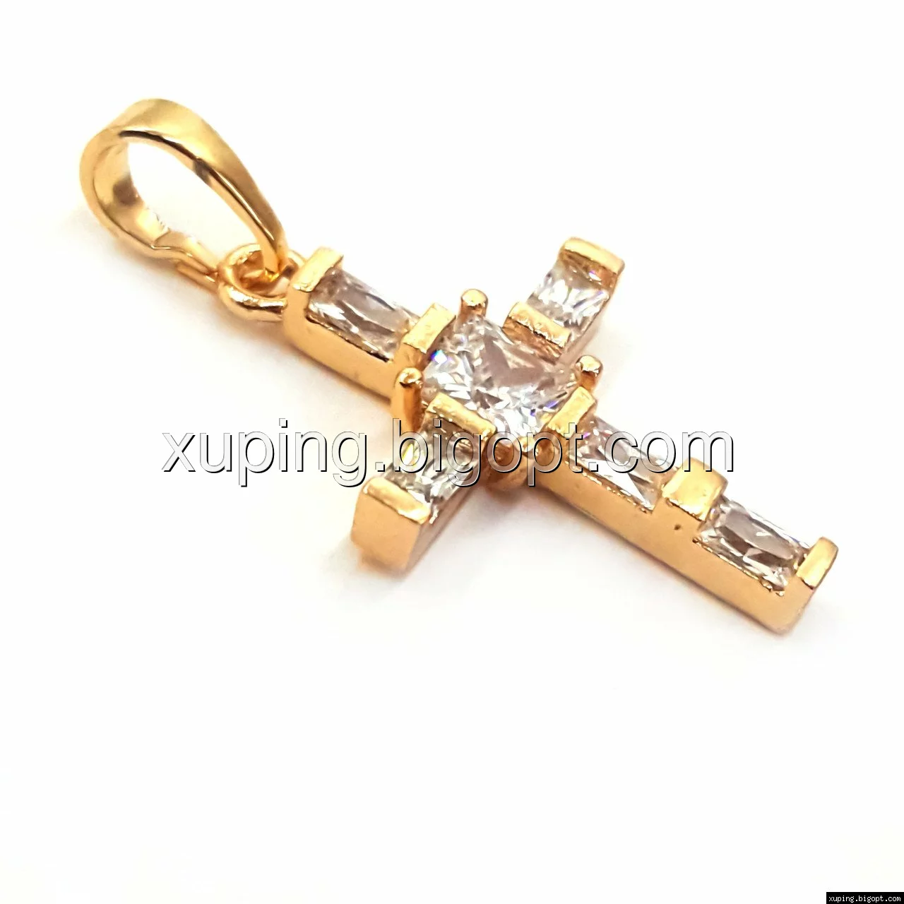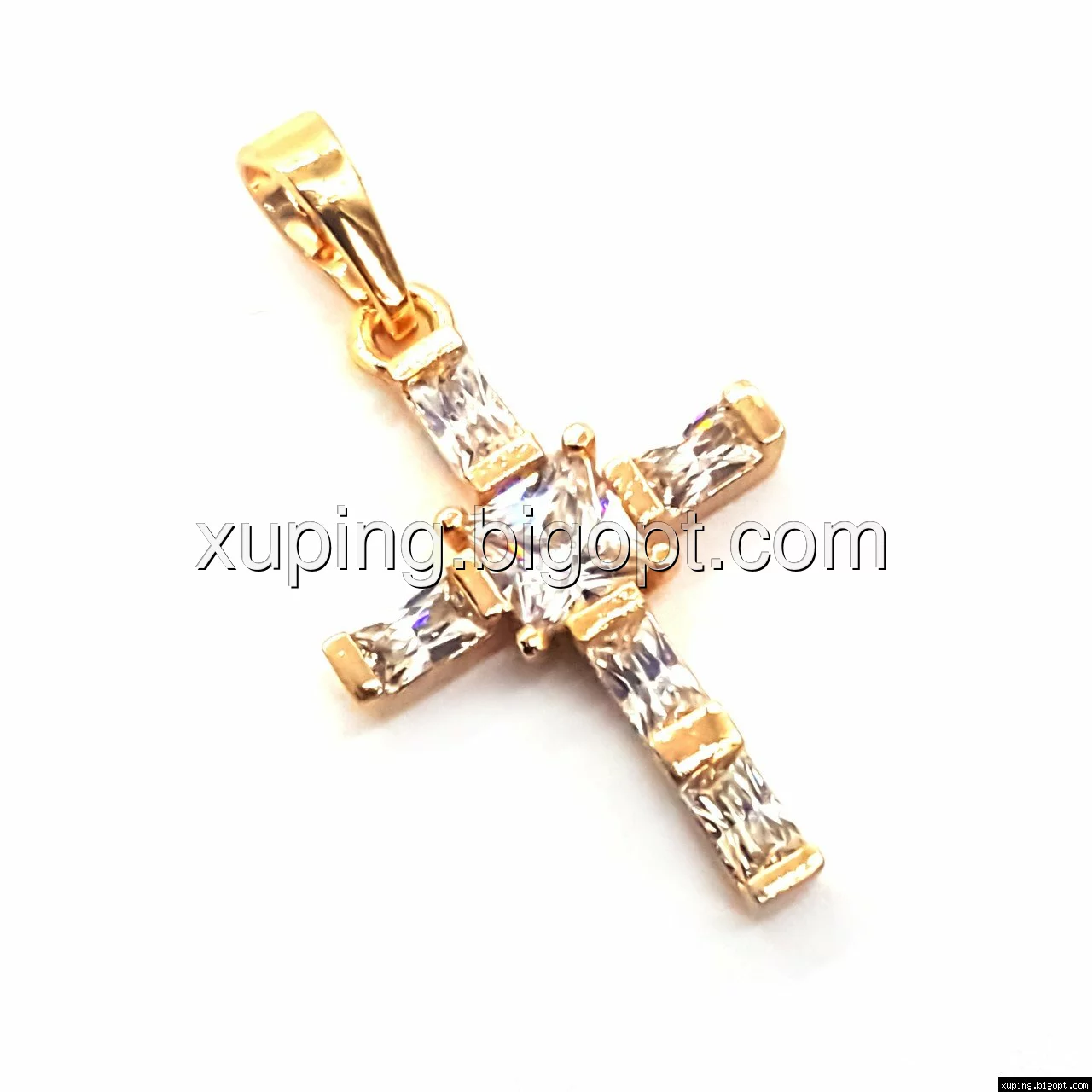 Крестик с багетным цирконием, позолота