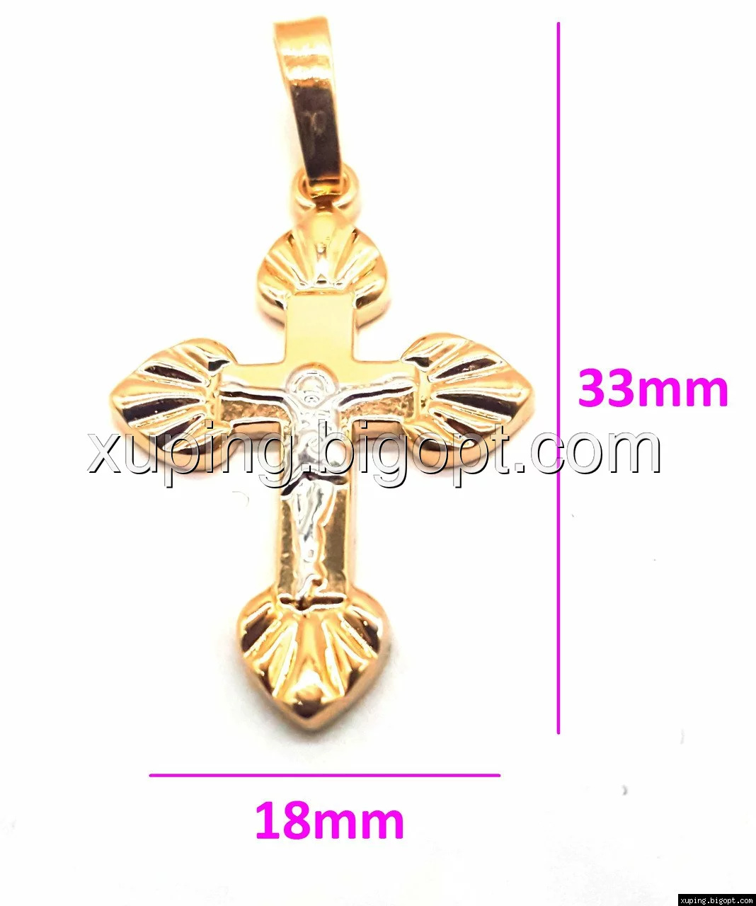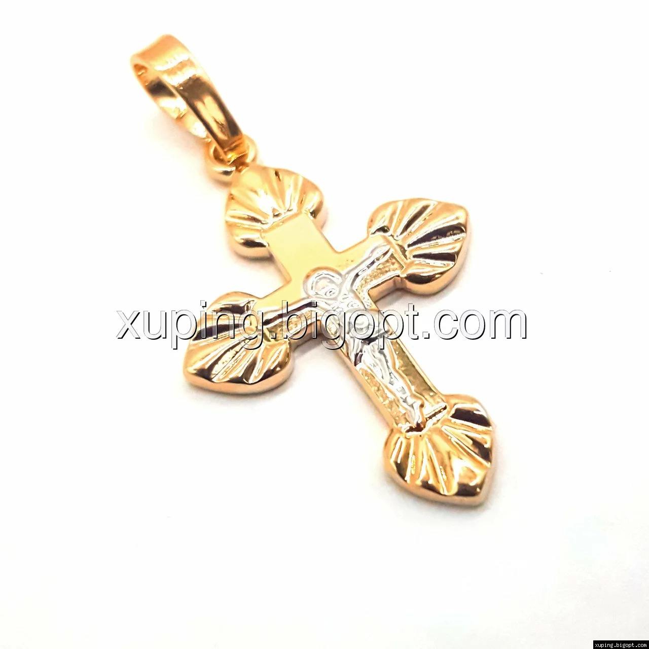 Хрестик з розп'яттям, без каменів, позолота+родій
