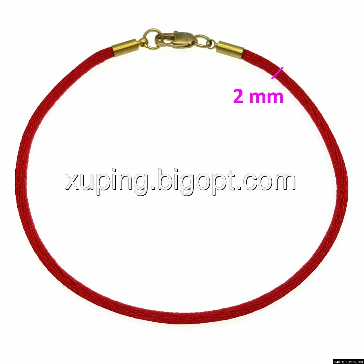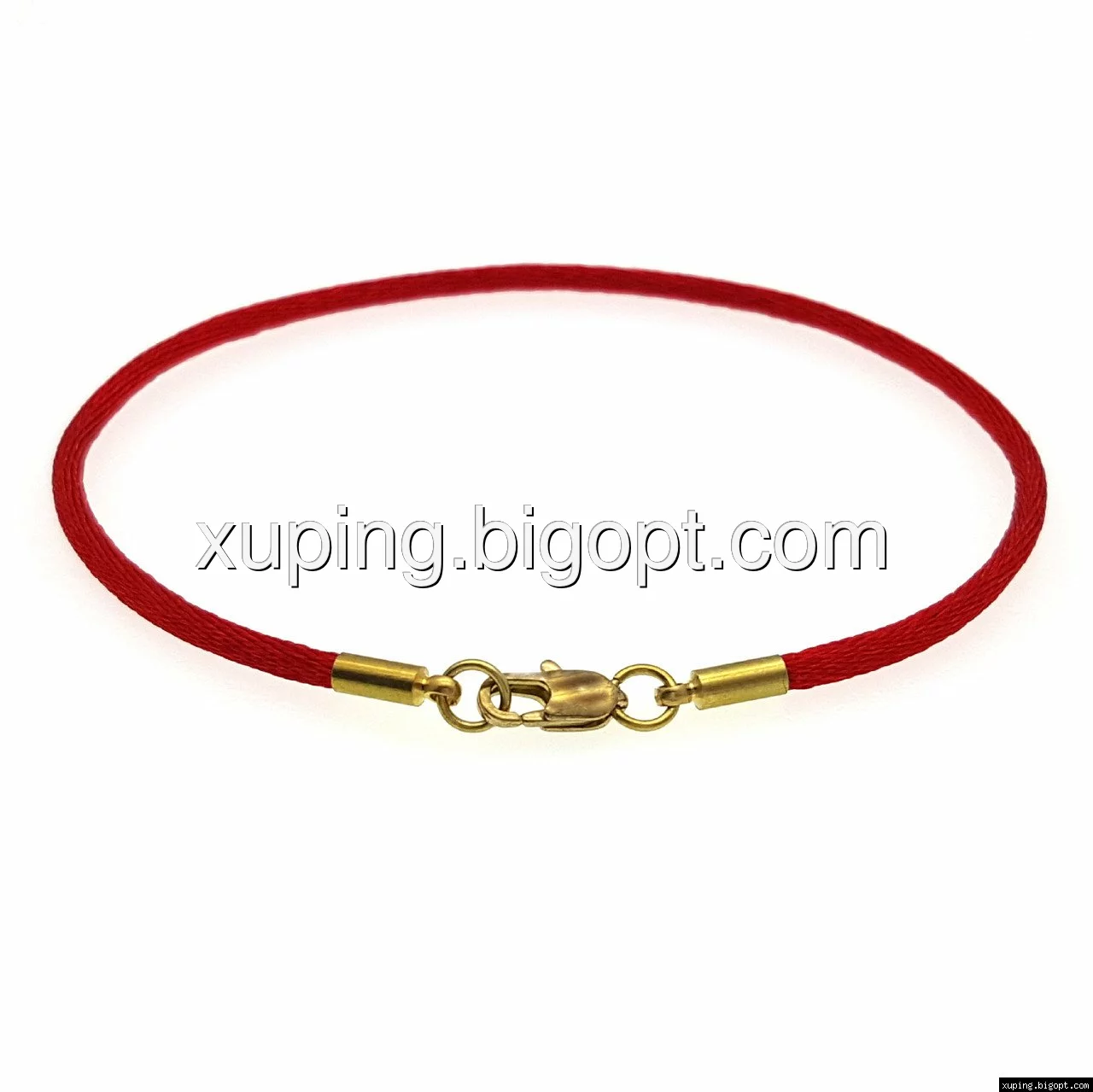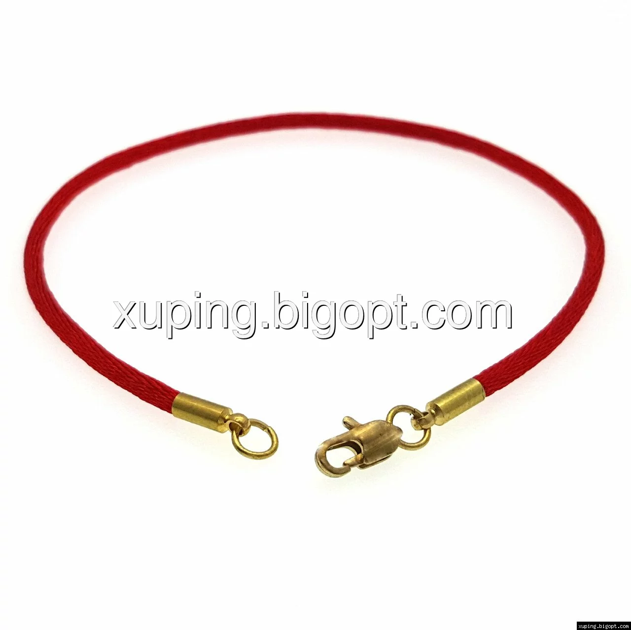 Красный шелковый браслет на руку, карабин которого изготовлен с латуни.