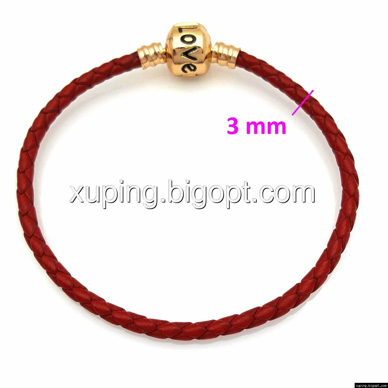 Красный шнурок "Love" на руку, под плетенную кожу, р.18, позолота Xuping