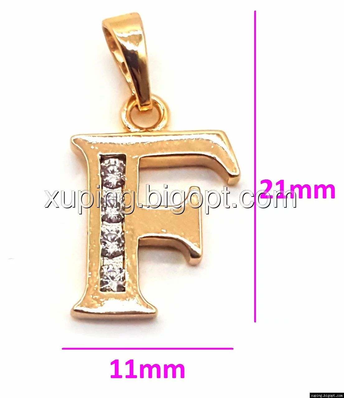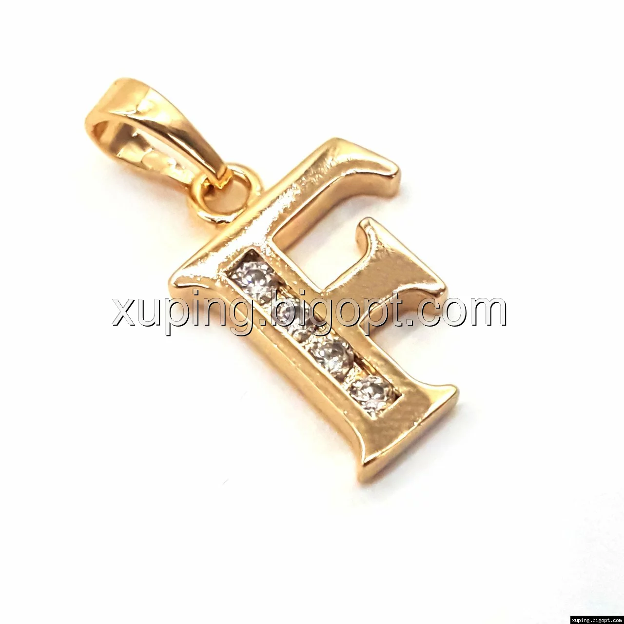 Кулон Английская буква "F", с цирконием, позолота