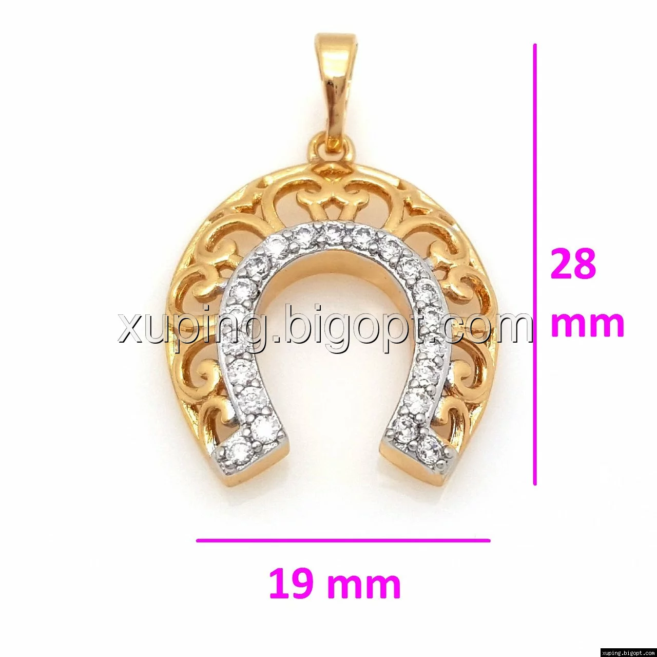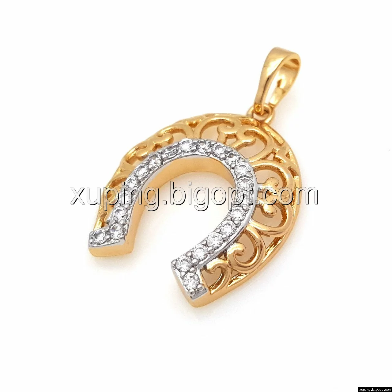 Кулон Ажурная Подков с цирконием, позолота+родий, Xuping