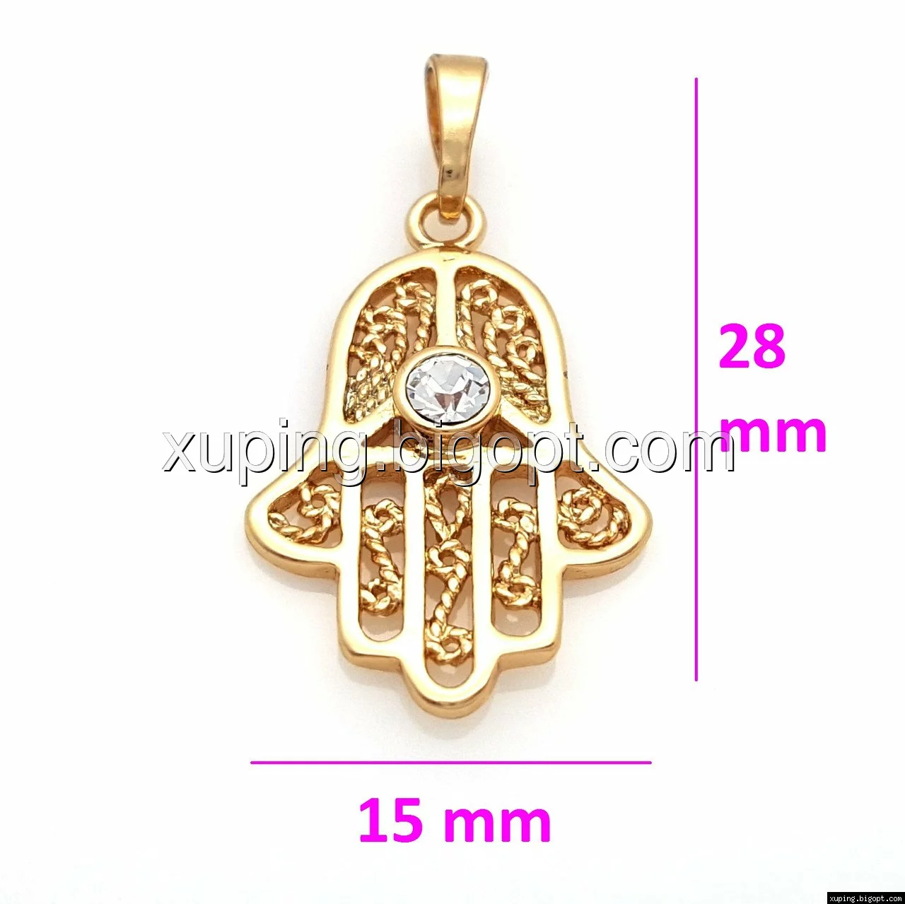 Кулон ажурний, Рука Фатіми, з цирконієм, позолота Xuping