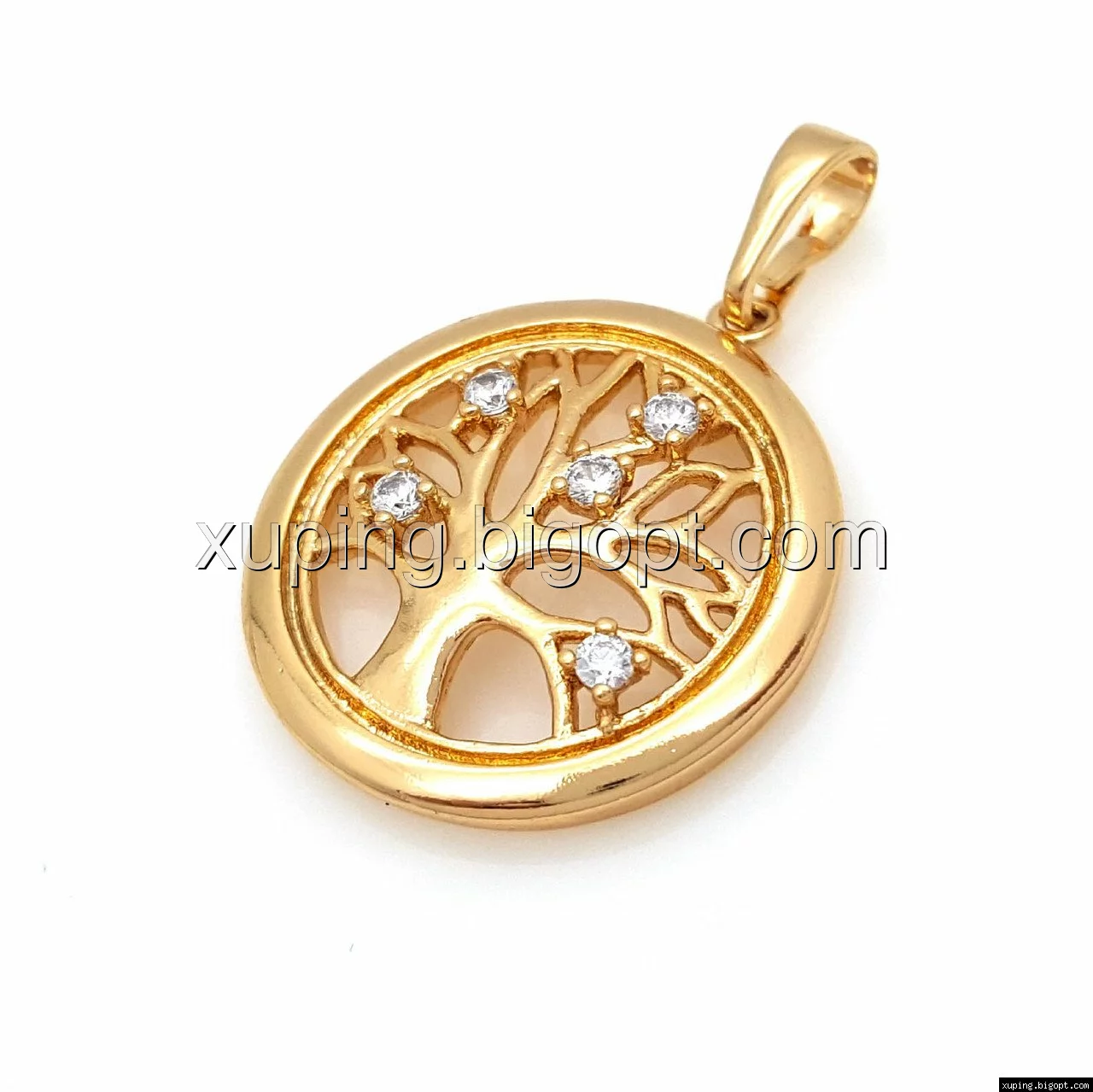 Кулон Ажурное Дерево с цирконием, позолота