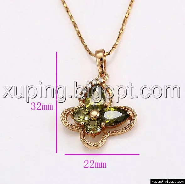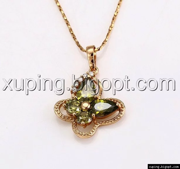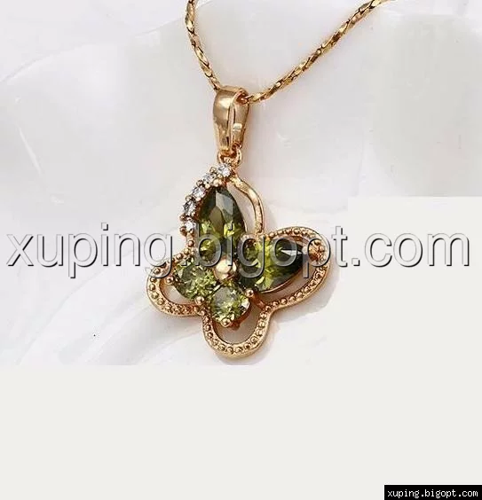 Кулон Бабочка с оливковым цирконием, позолота