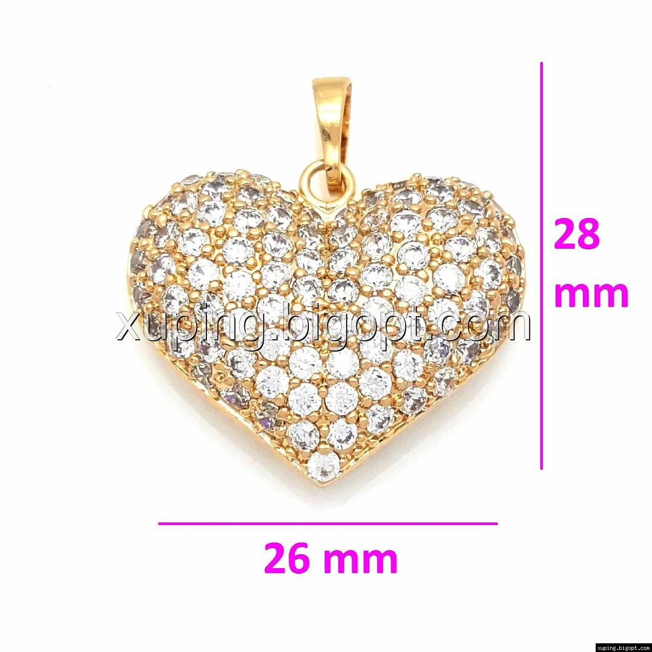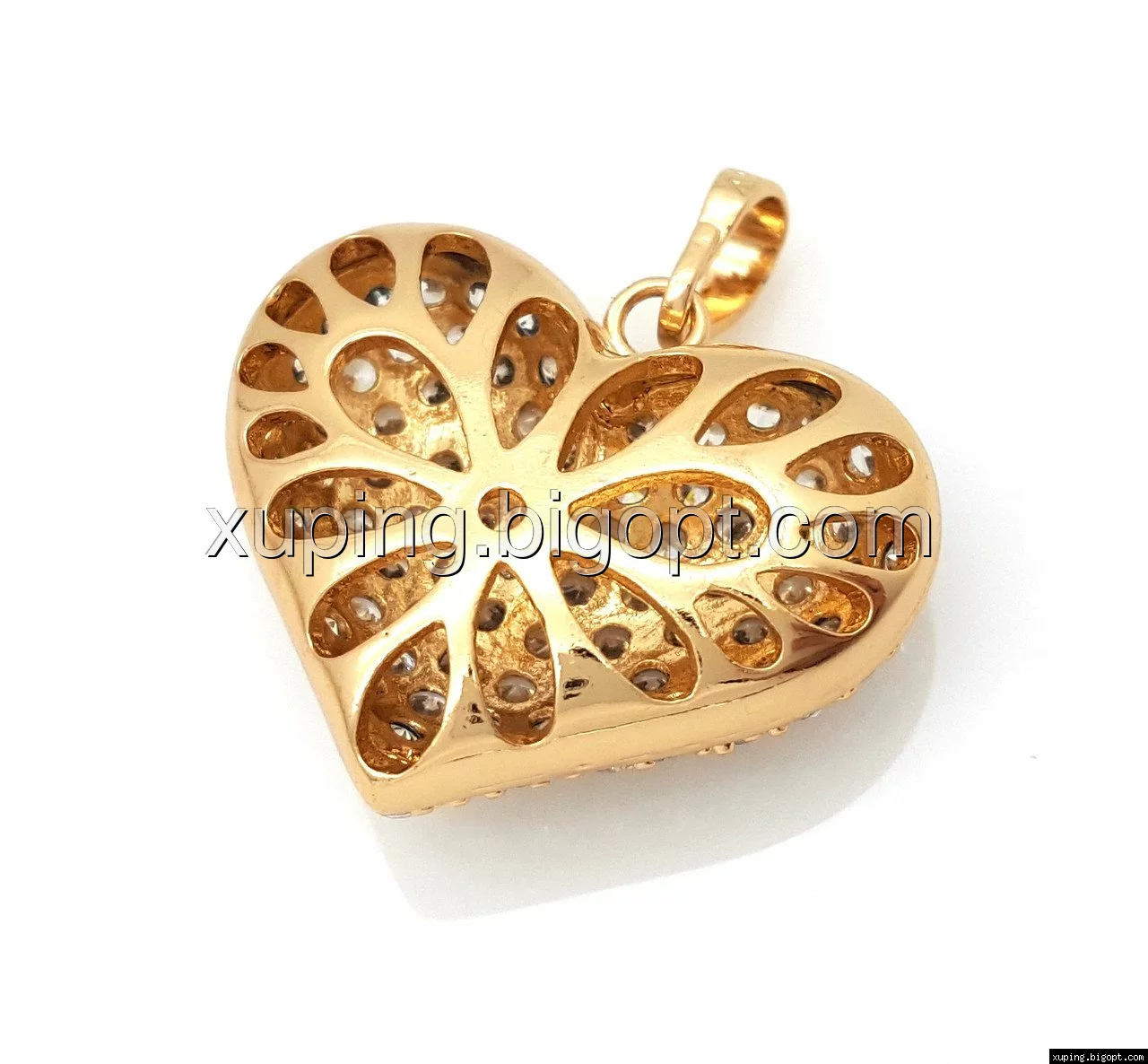 Кулон Большое Сердце, в россыпи камней, позолота Xuping
