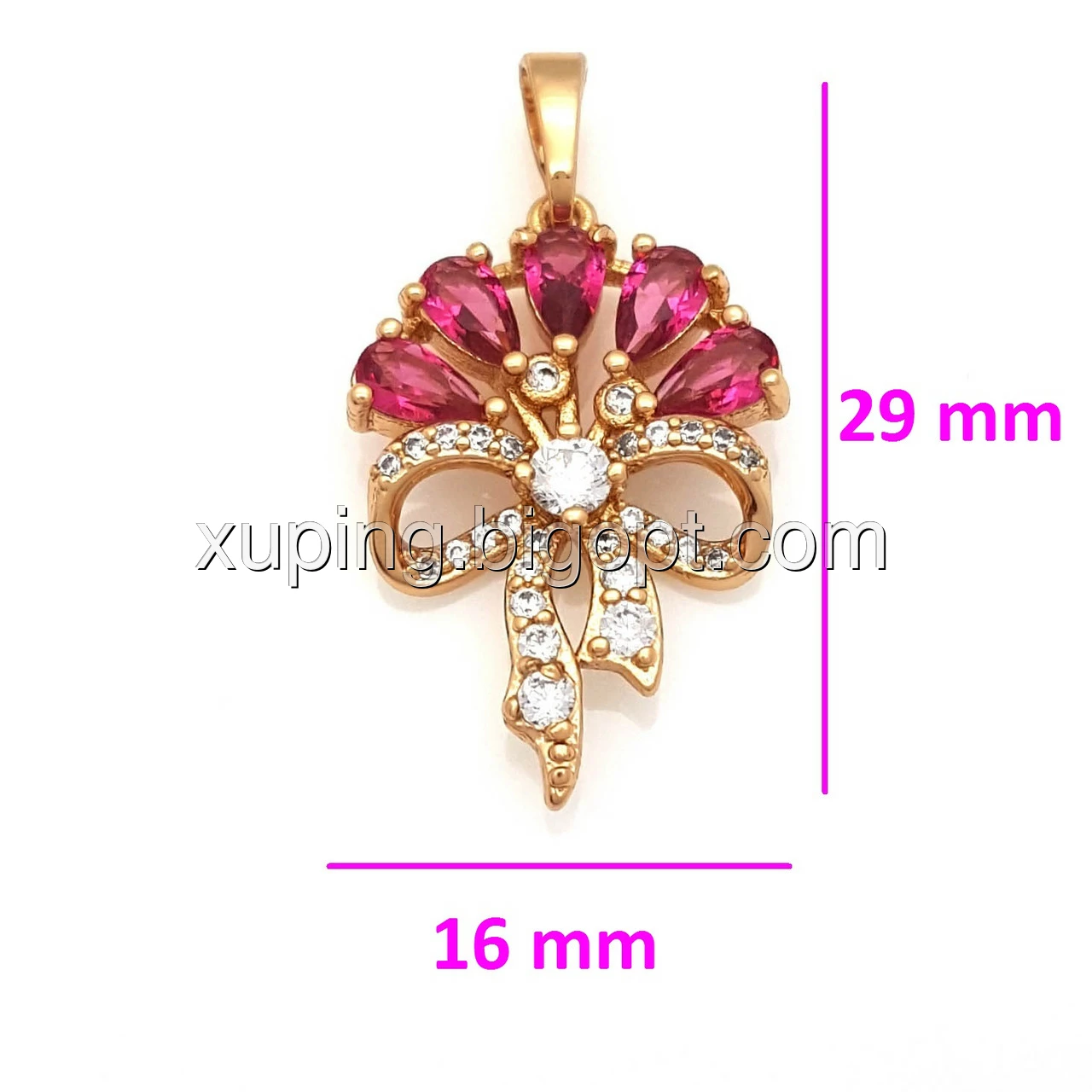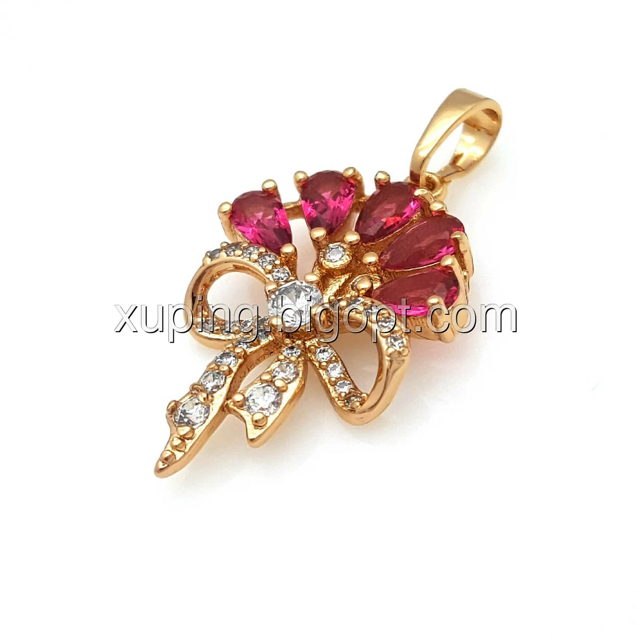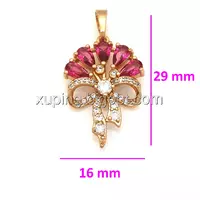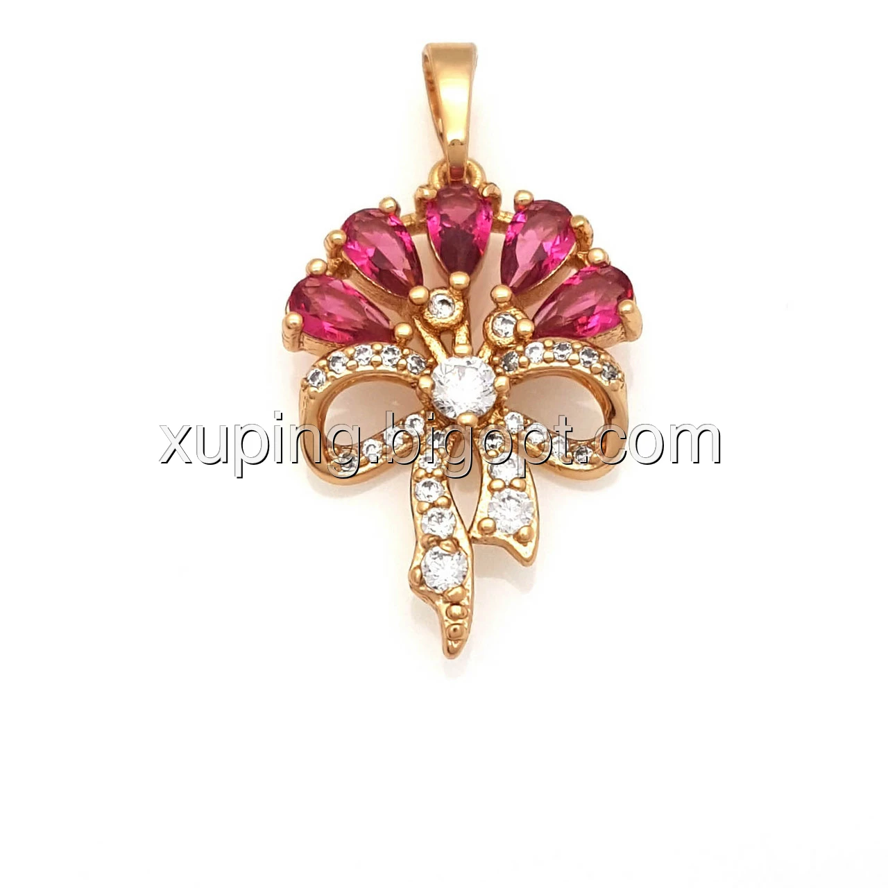 Кулон Букетик с бантом, вставка цирконий под рубин, позолота