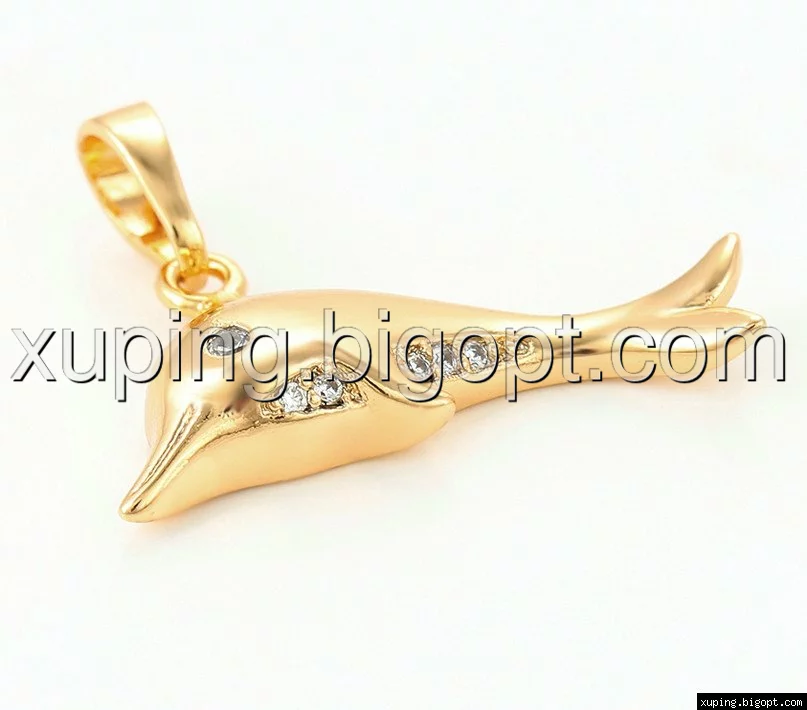 Кулон Дельфін з цирконієм, позолота+родій
