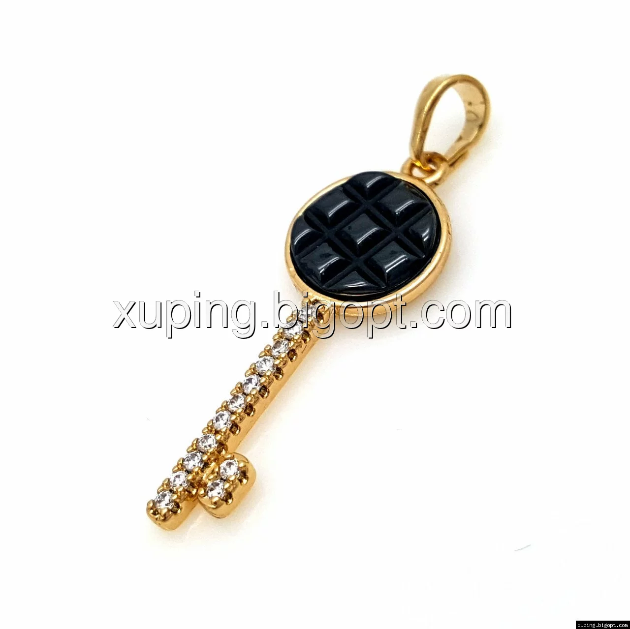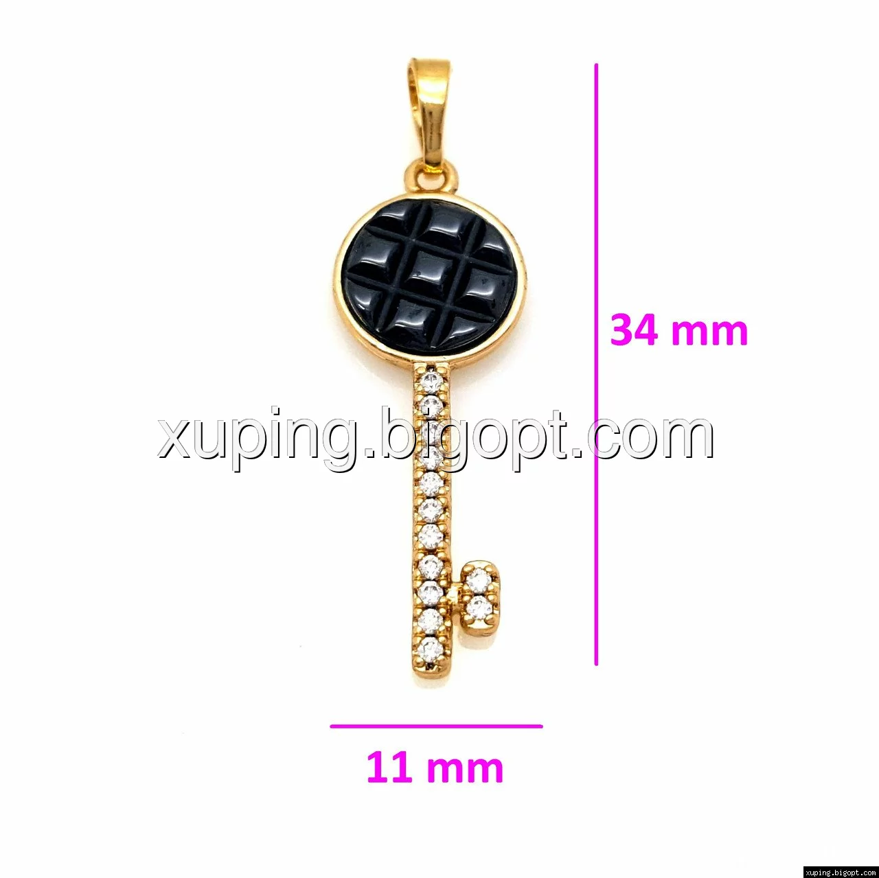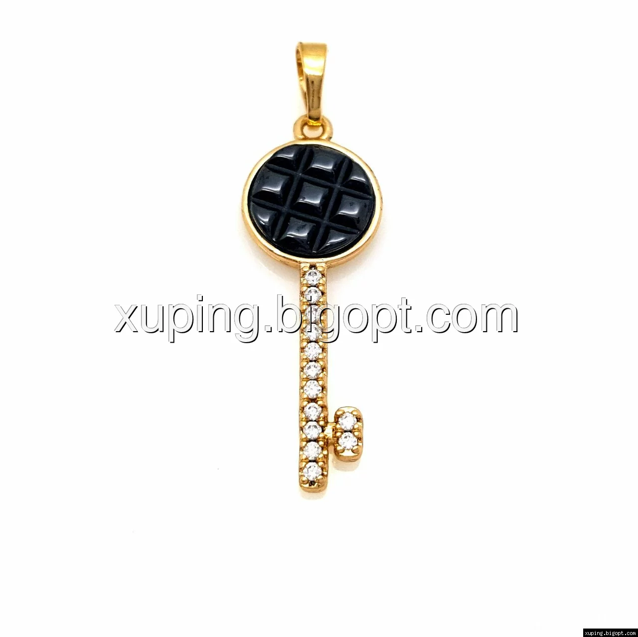 Кулон Ключик, с черной керамикой и камнями, позолота