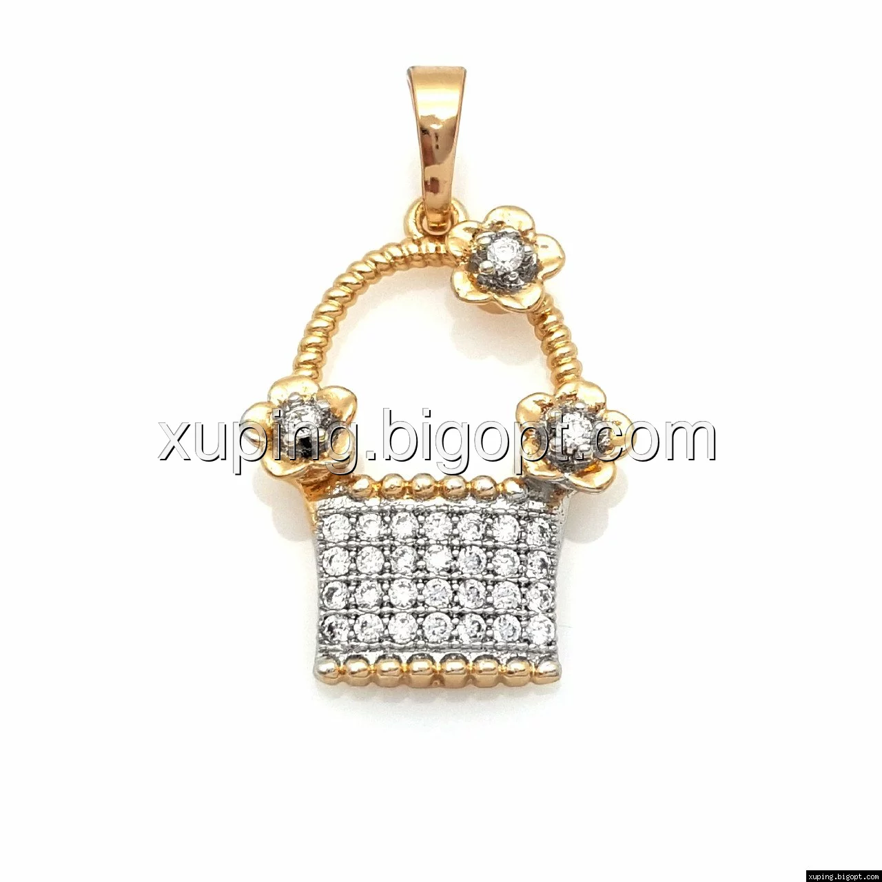 Кулон Корзинка с Цветами и цирконием, позолота+родий