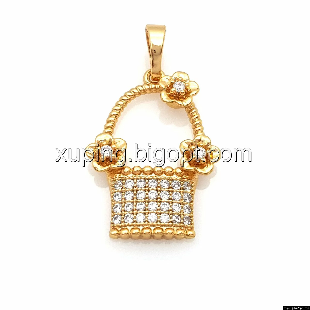 Кулон Корзинка с Цветками и цирконием, позолота Xuping