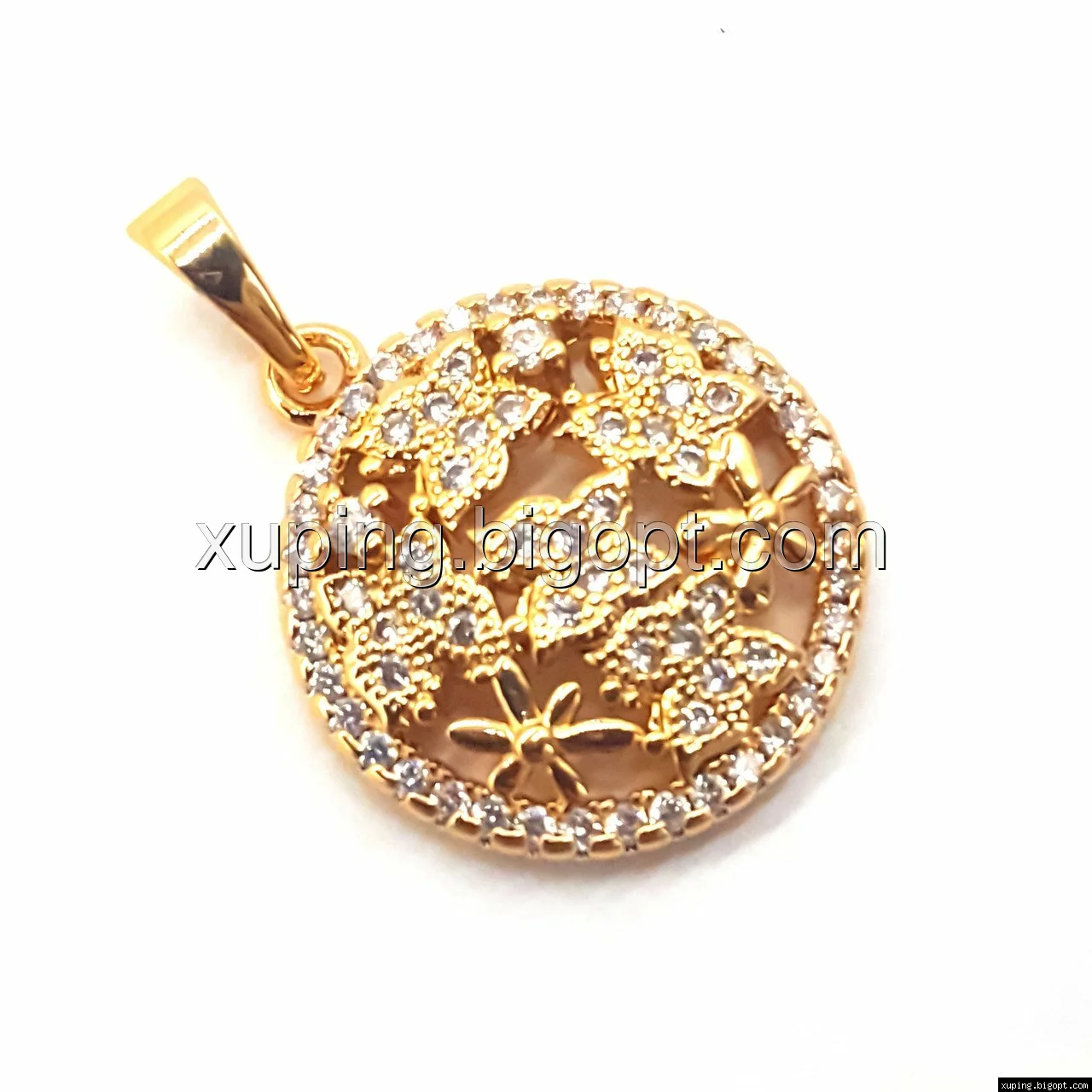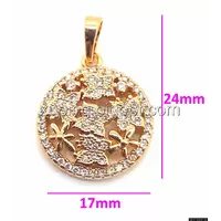 Кулон Круг с бабочками, инкрустация циркония, позолота