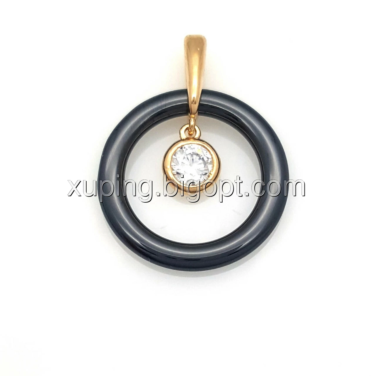 Кулон Коло з чорної кераміки і вставкою цирконію, позолота