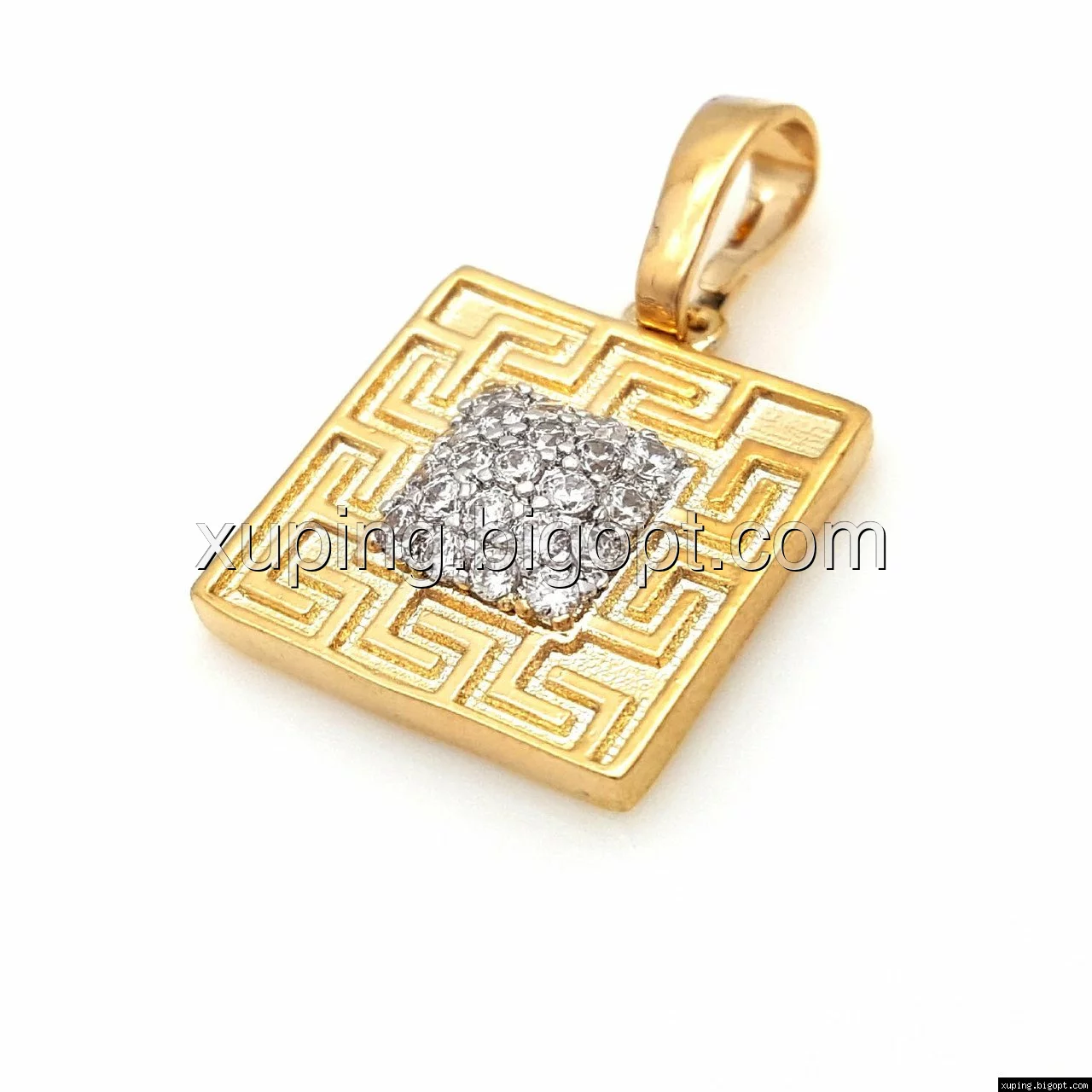 Кулон Квадрат с греческим рисунком, россыпь циркония, позолота+родий