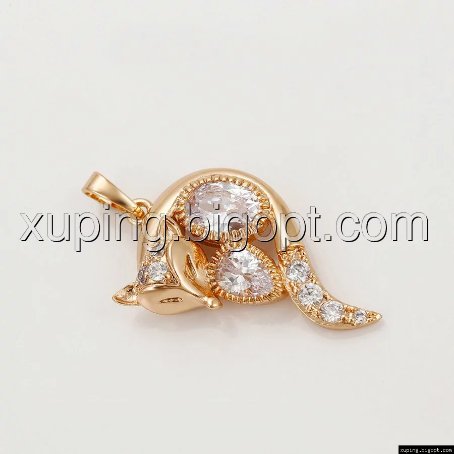 Кулон Лиса, инкрустация циркония, позолота