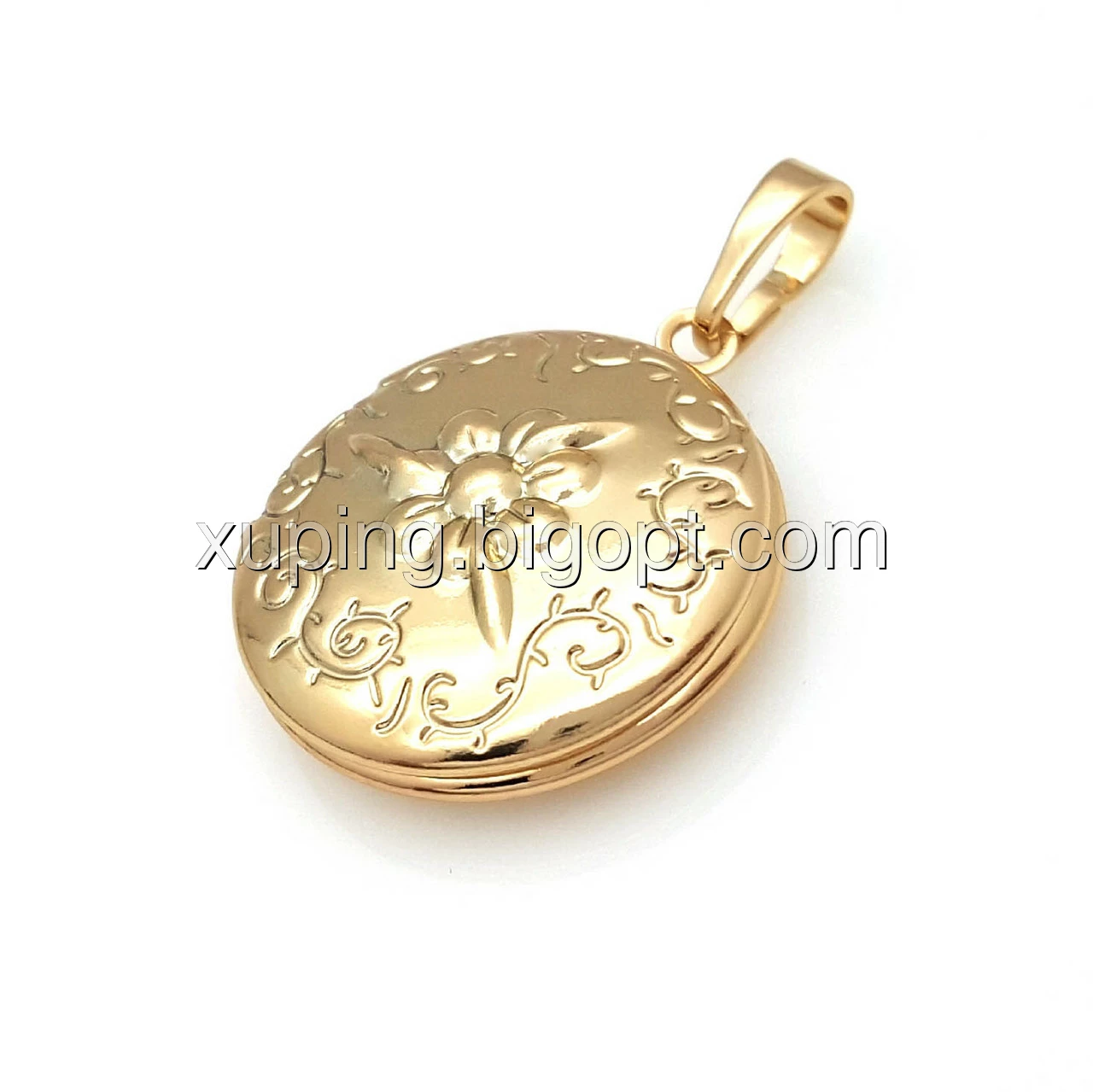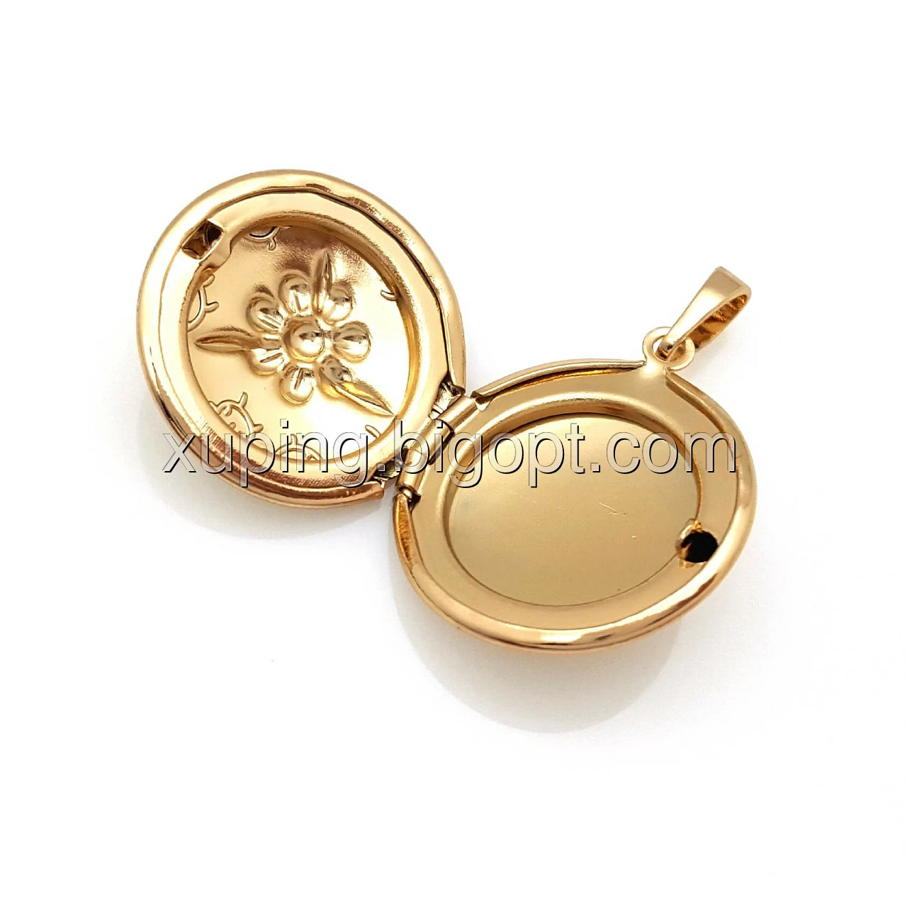 Кулон-медальйон, Коло з квітковим малюнком, позолота