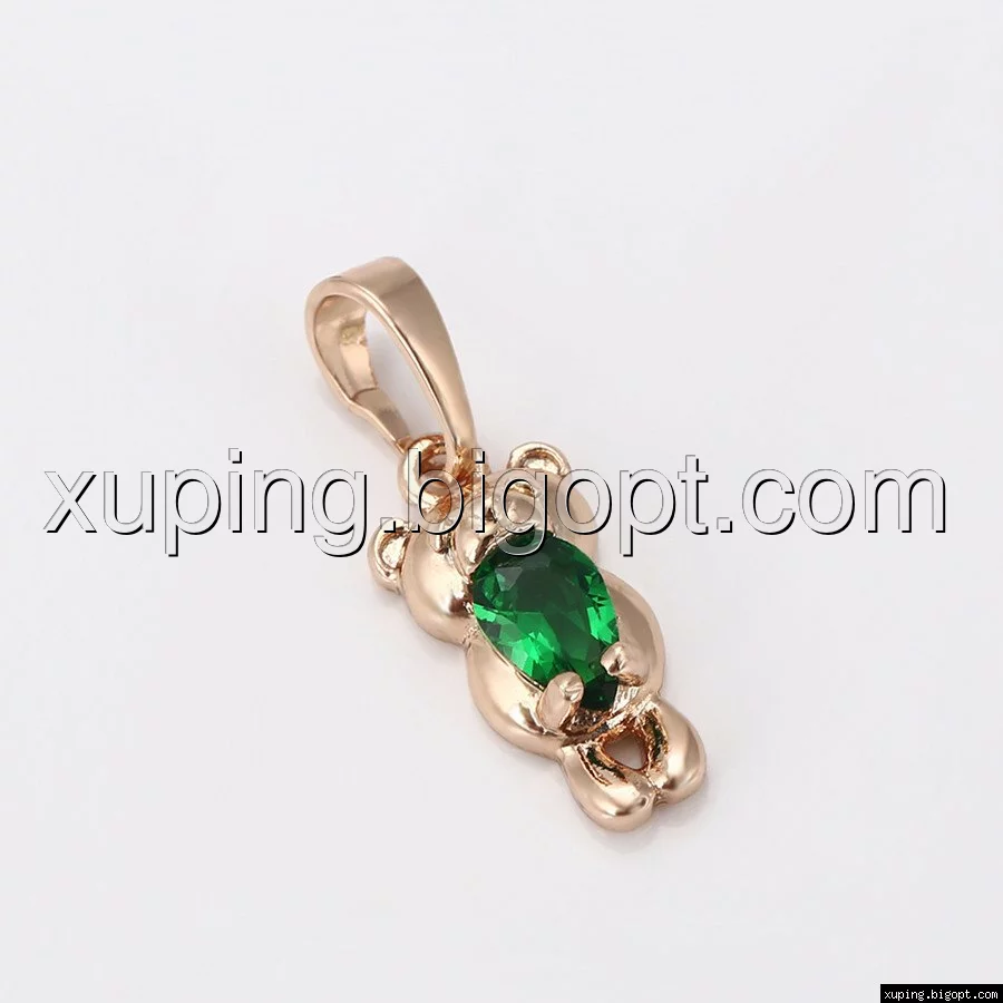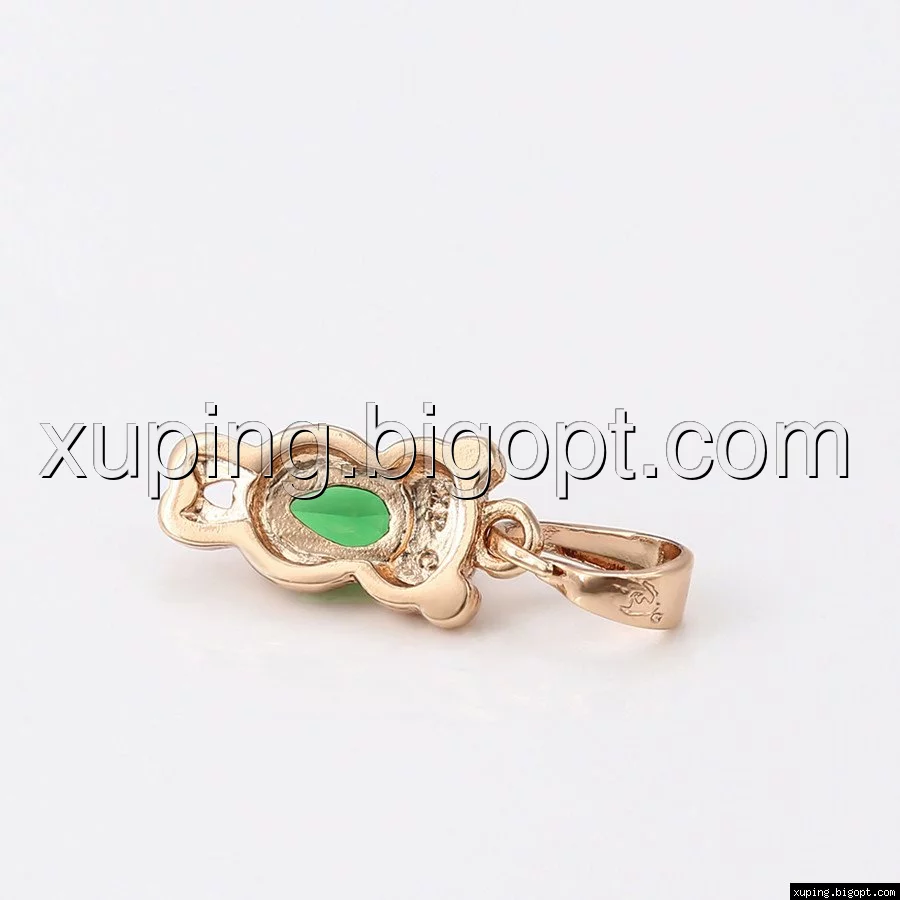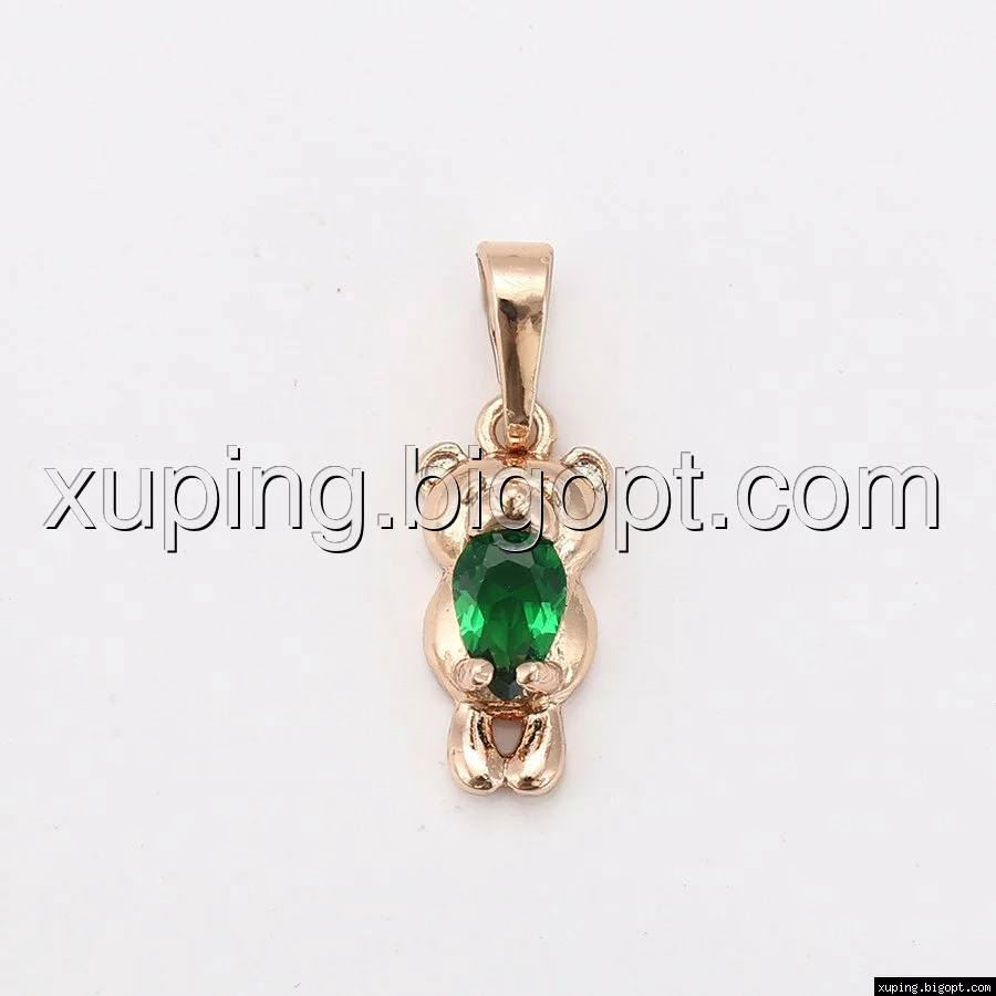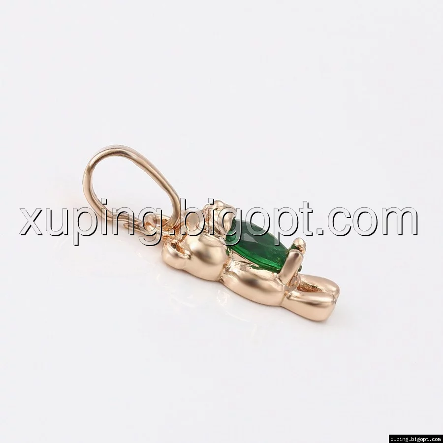 Кулон Мишка, с зеленым цирконием, позолота