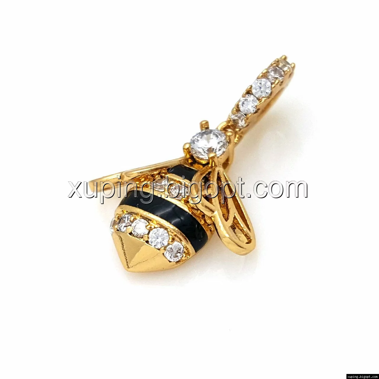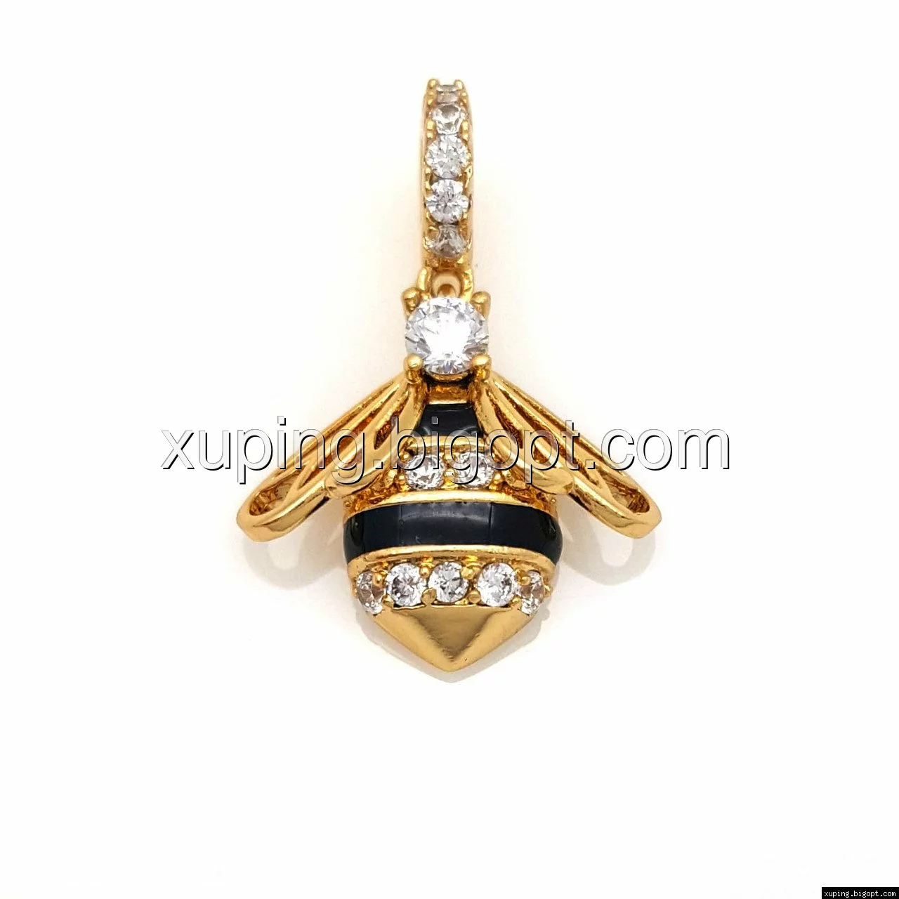 Кулон Пчела в камнях с черной эмалью, позолота Xuping