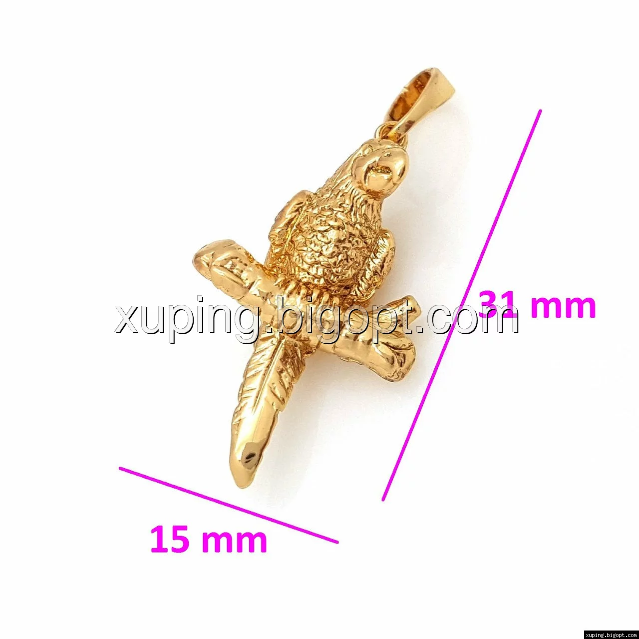 Кулон Попугайчик, без камней, позолота Xuping