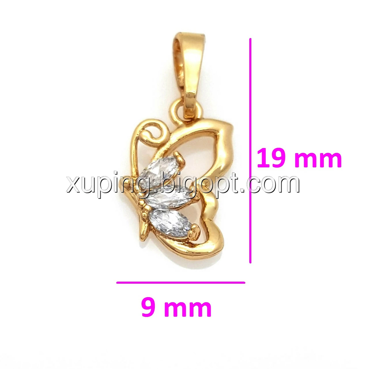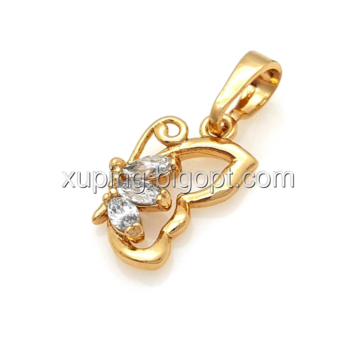 Кулон позолоченный, Бабочка с багетным цирконием