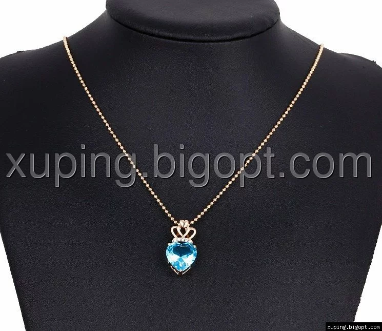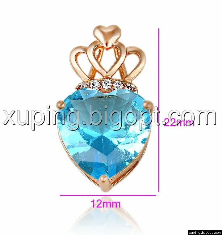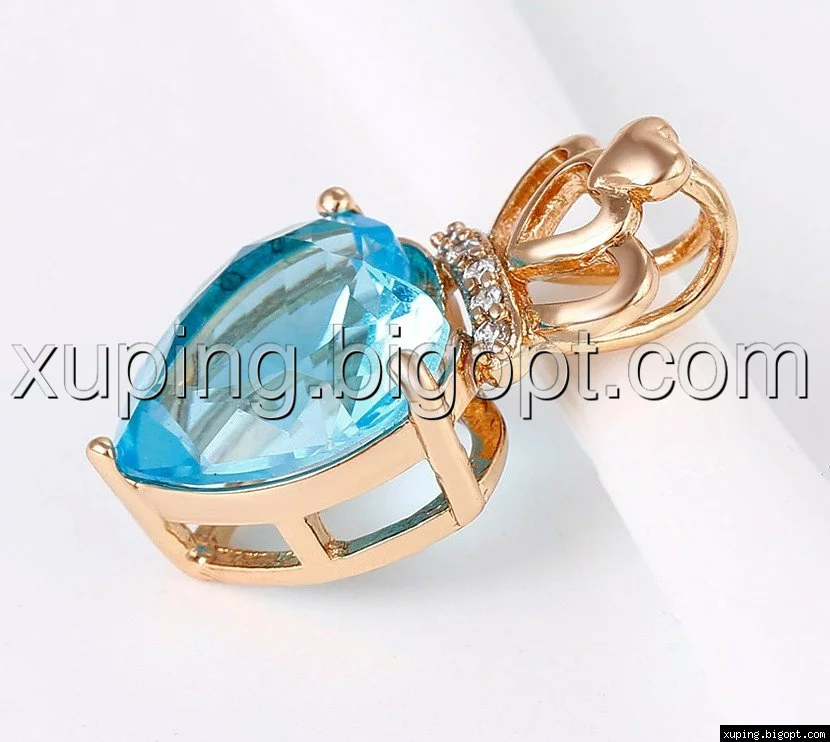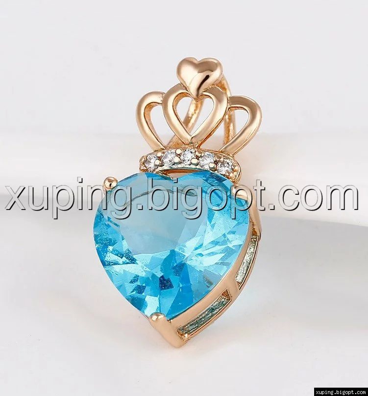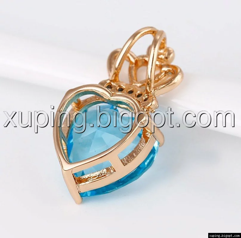 Кулон позолоченный, Голубой цирконий в форме сердца