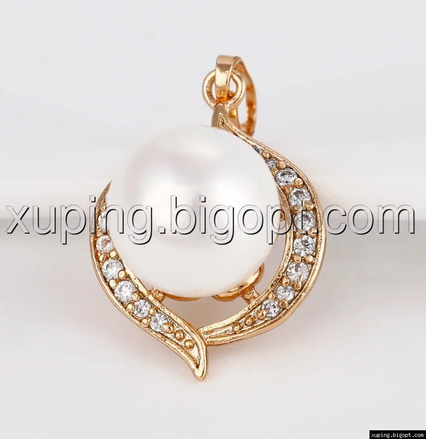 Кулон позолоченный, Крупный жемчуг с россыпью циркония