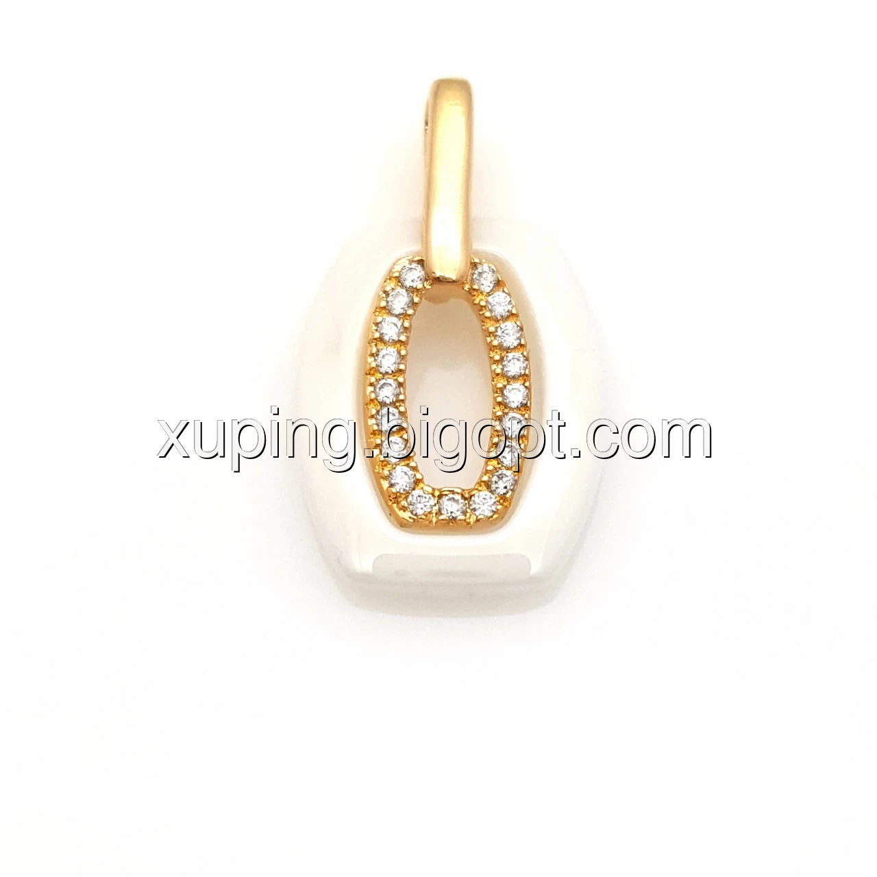 Кулон позолоченный, Прямоугольник с белой керамики, вставка цирконий