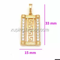 Кулон позолоченный, Прямоугольник с камнями и греческим узором