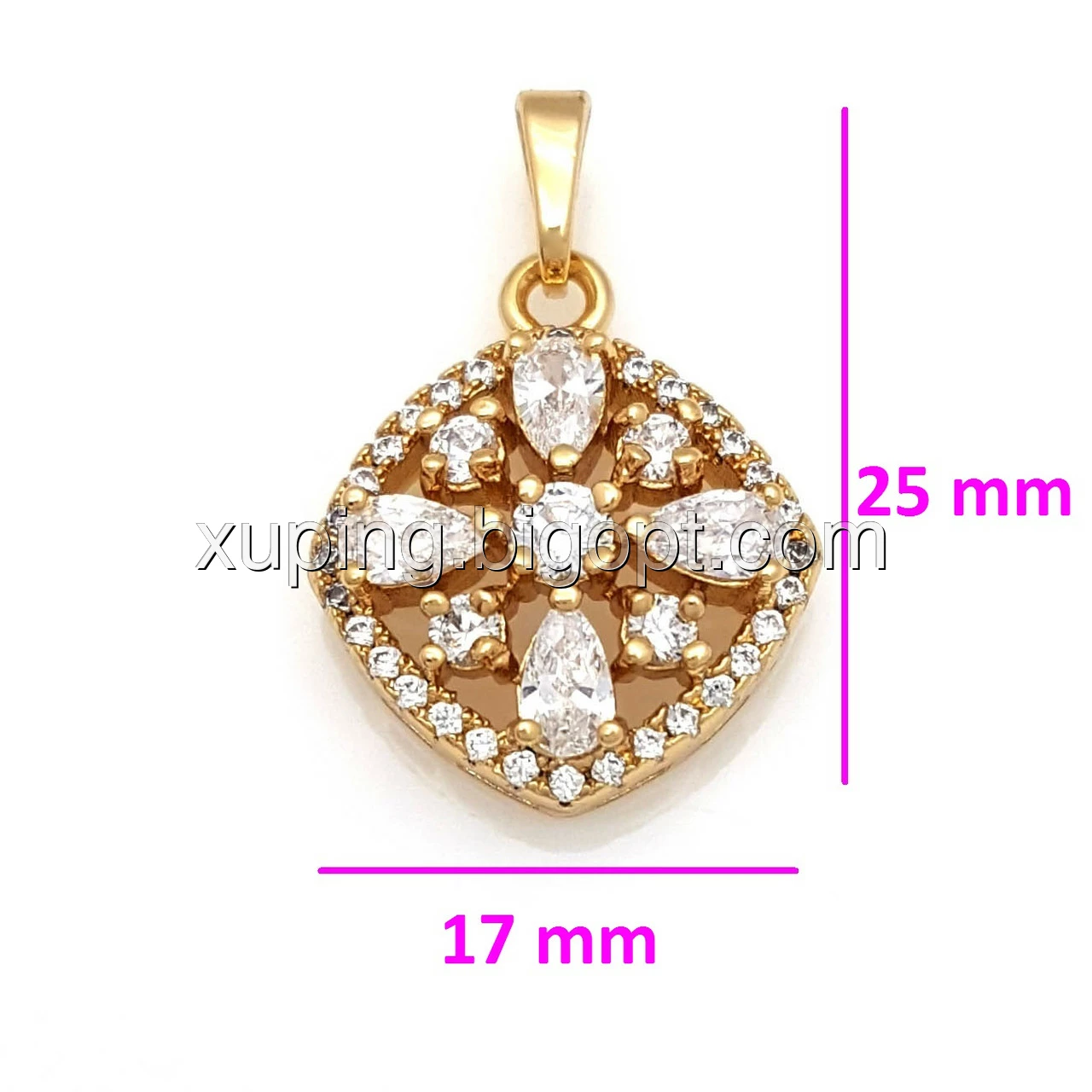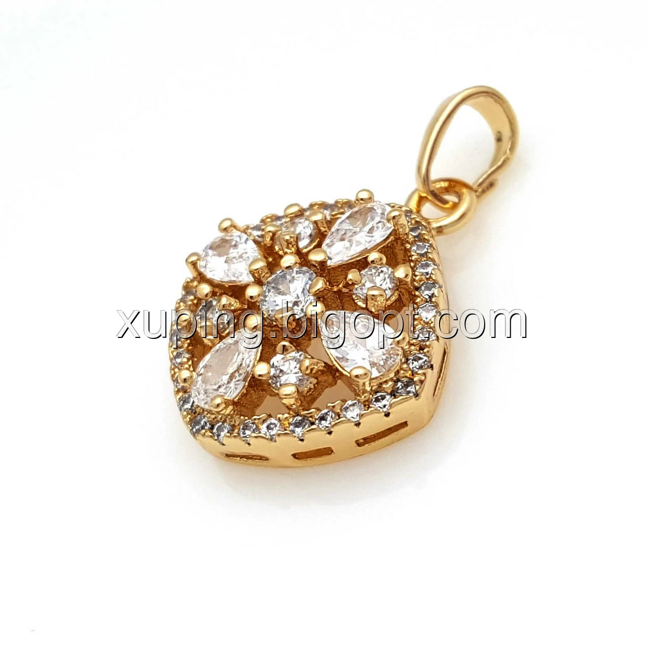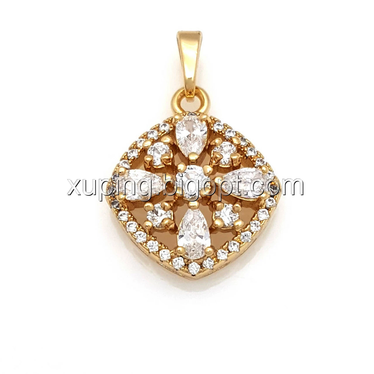 Кулон позолочений, Квітковий ромб з розсипом цирконію