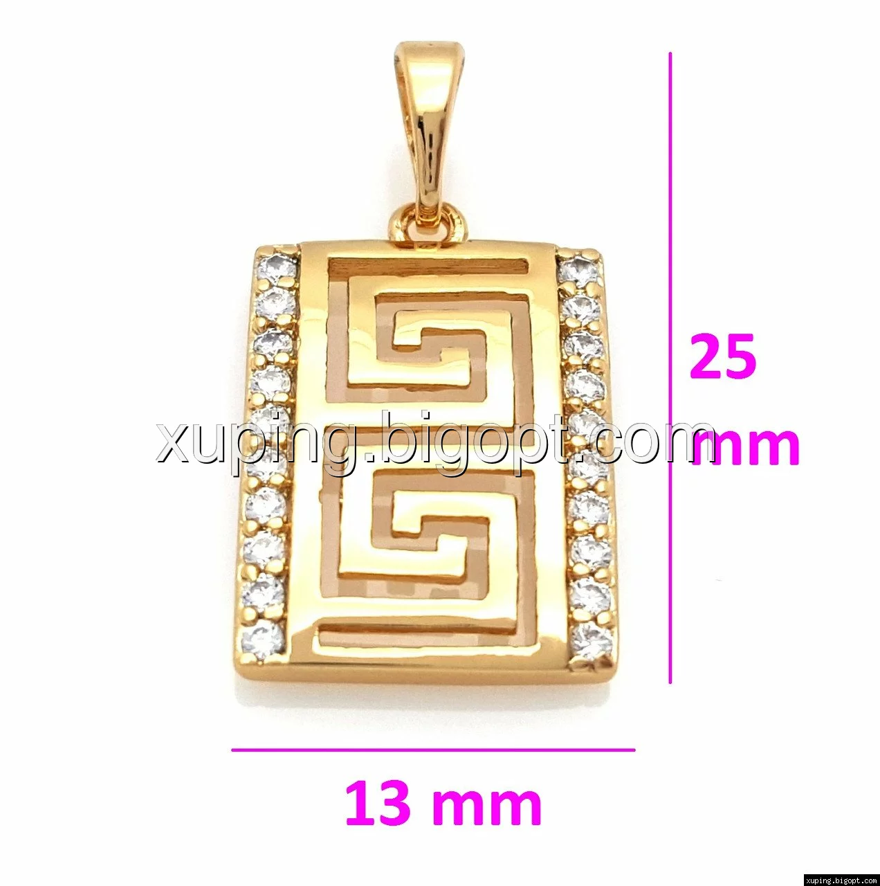 Кулон позолочений, з Грецьким візерунком і розсипом каміння