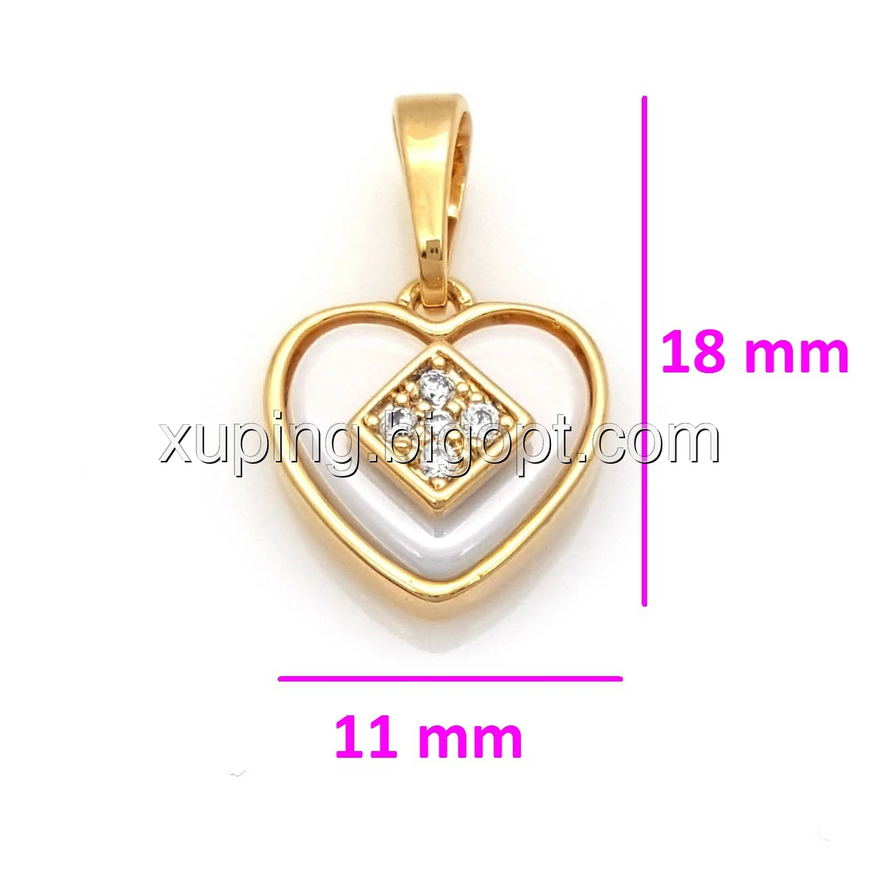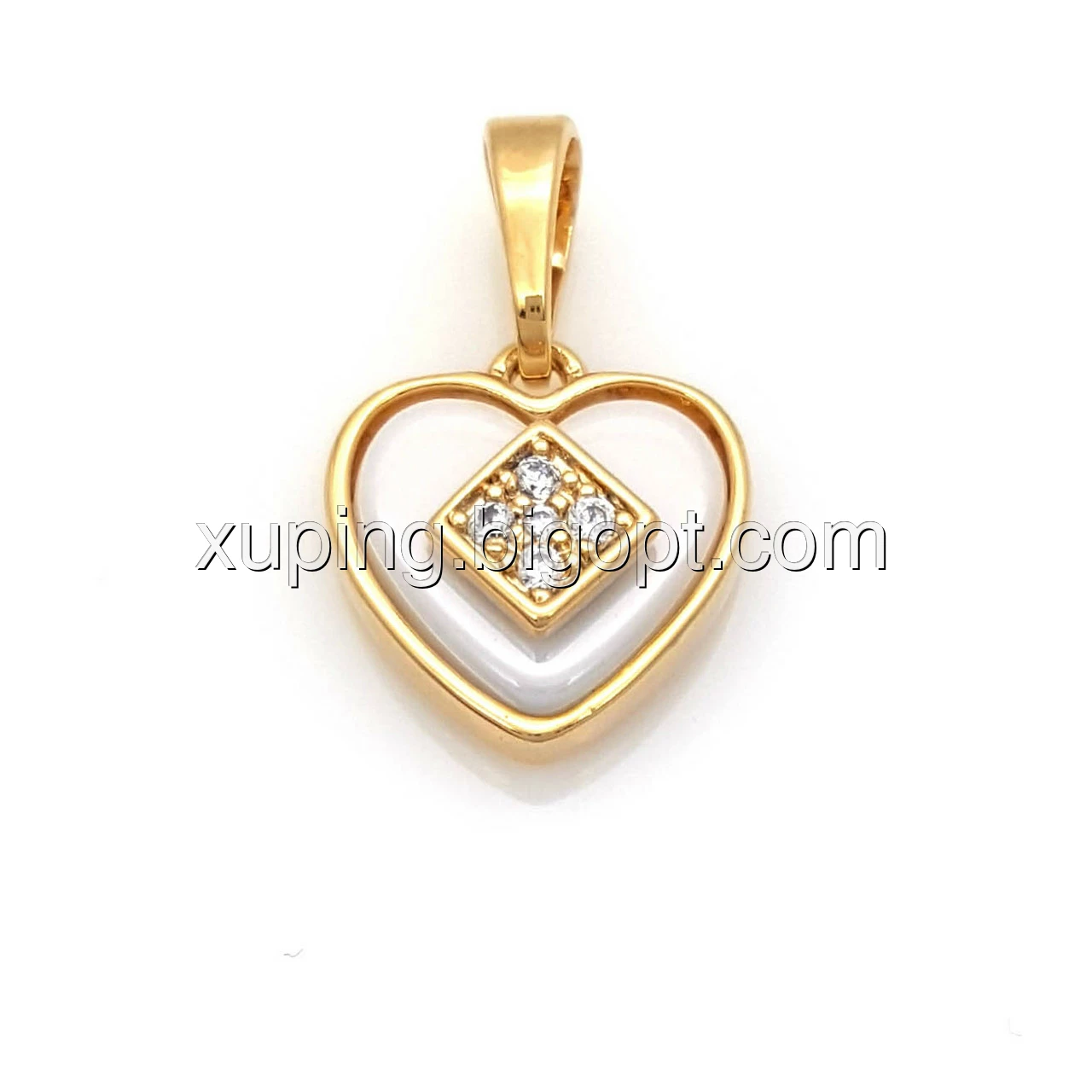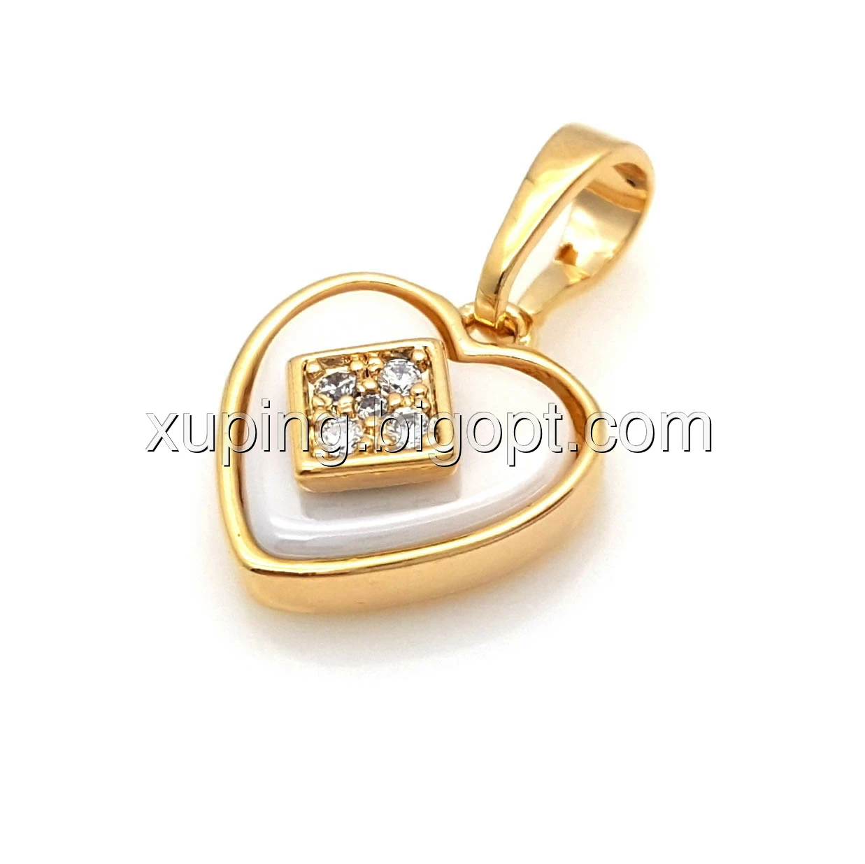 Кулон позолоченный, Сердце с белой керамики, вставка цирконий