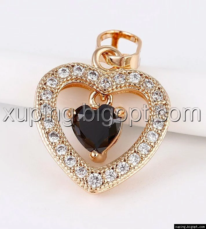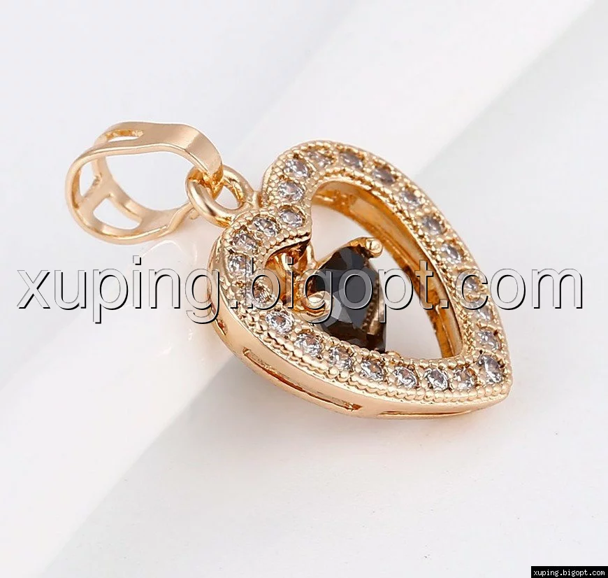 Кулон позолоченный, Сердце с черным цирконием по центру
