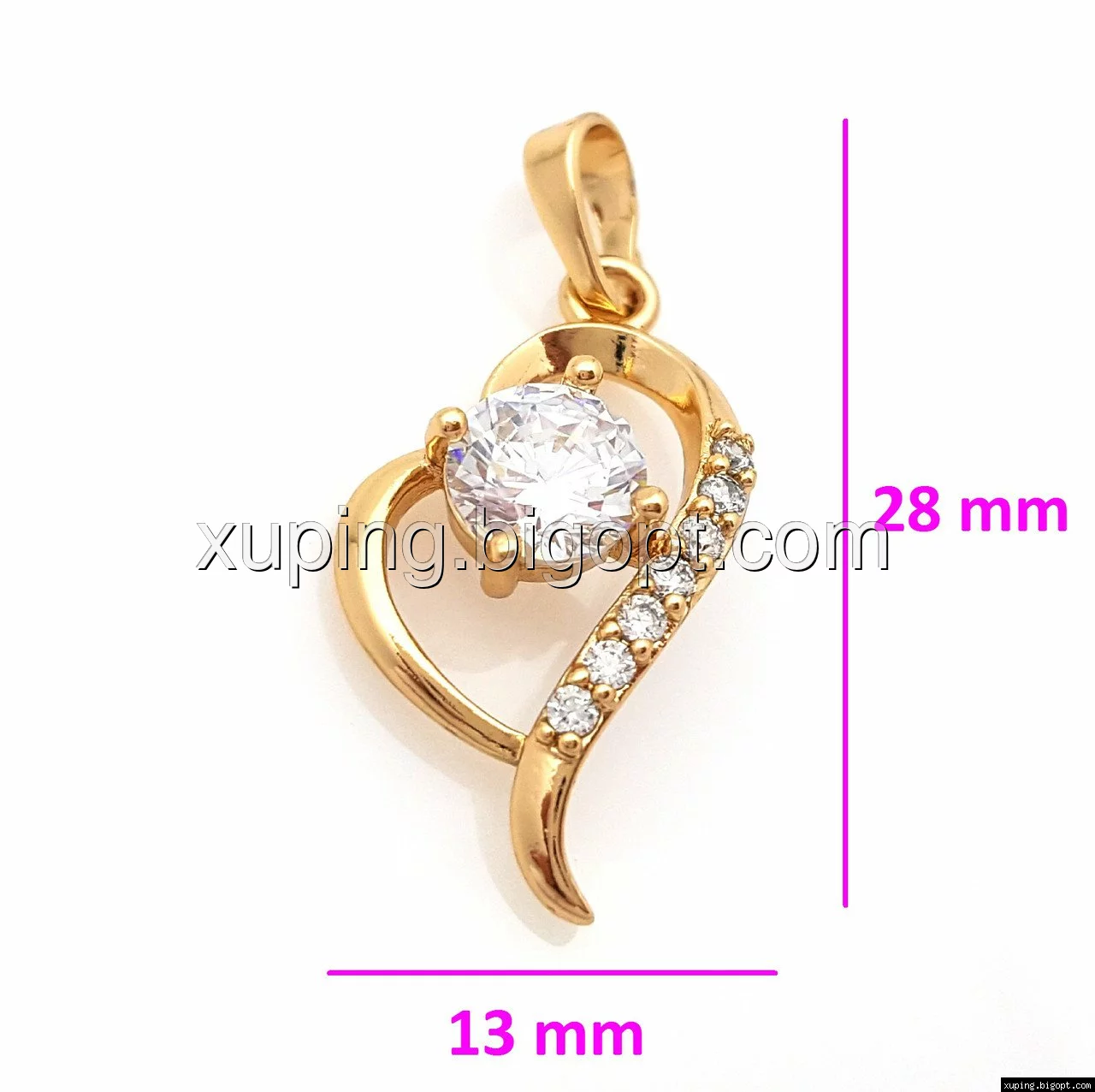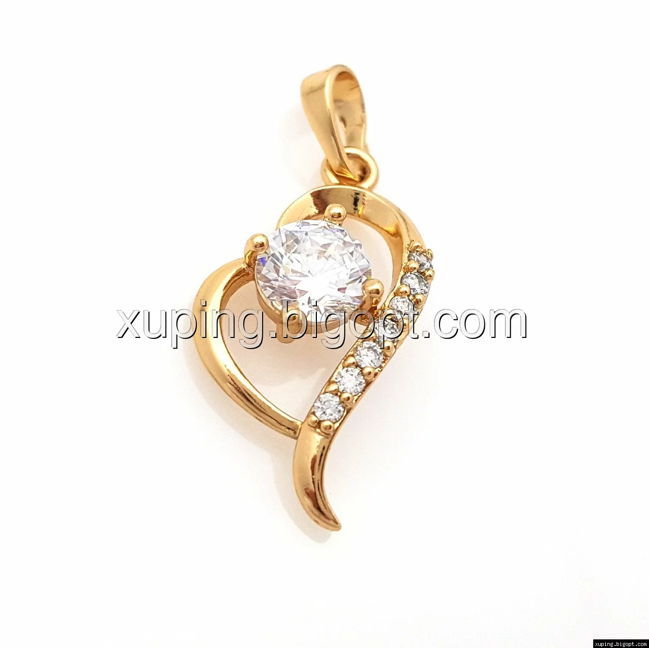 Кулон позолоченный, Сердце с цирконием