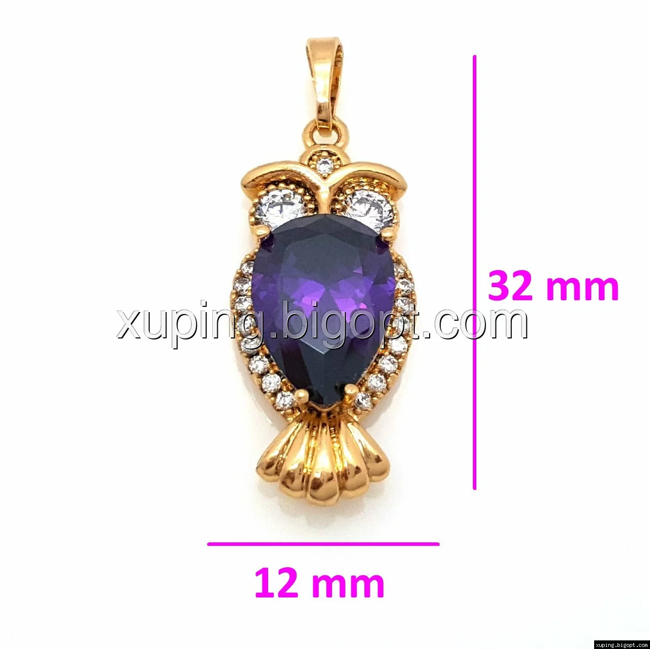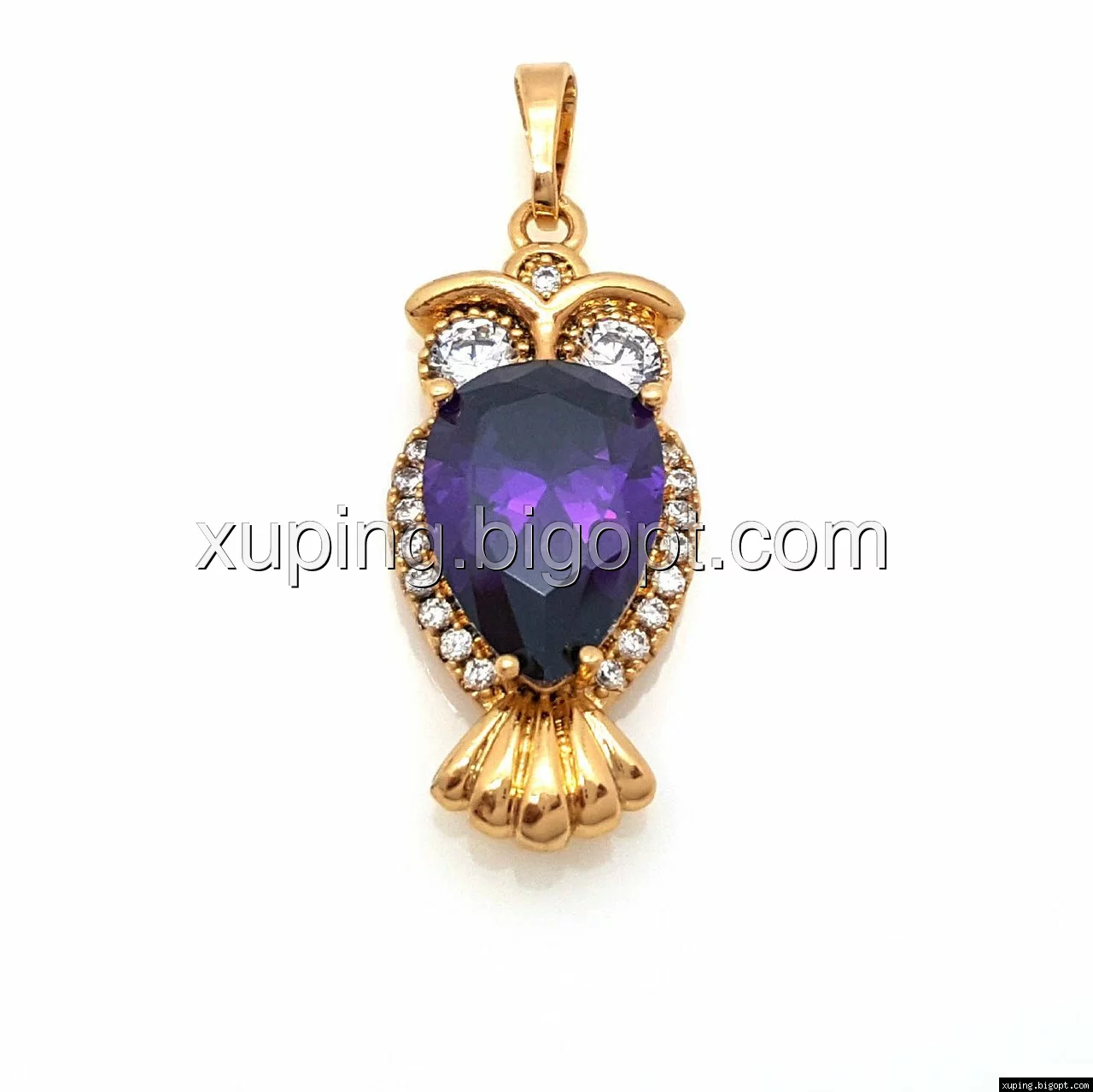 Кулон позолоченный, Сова с фиолетовым цирконием