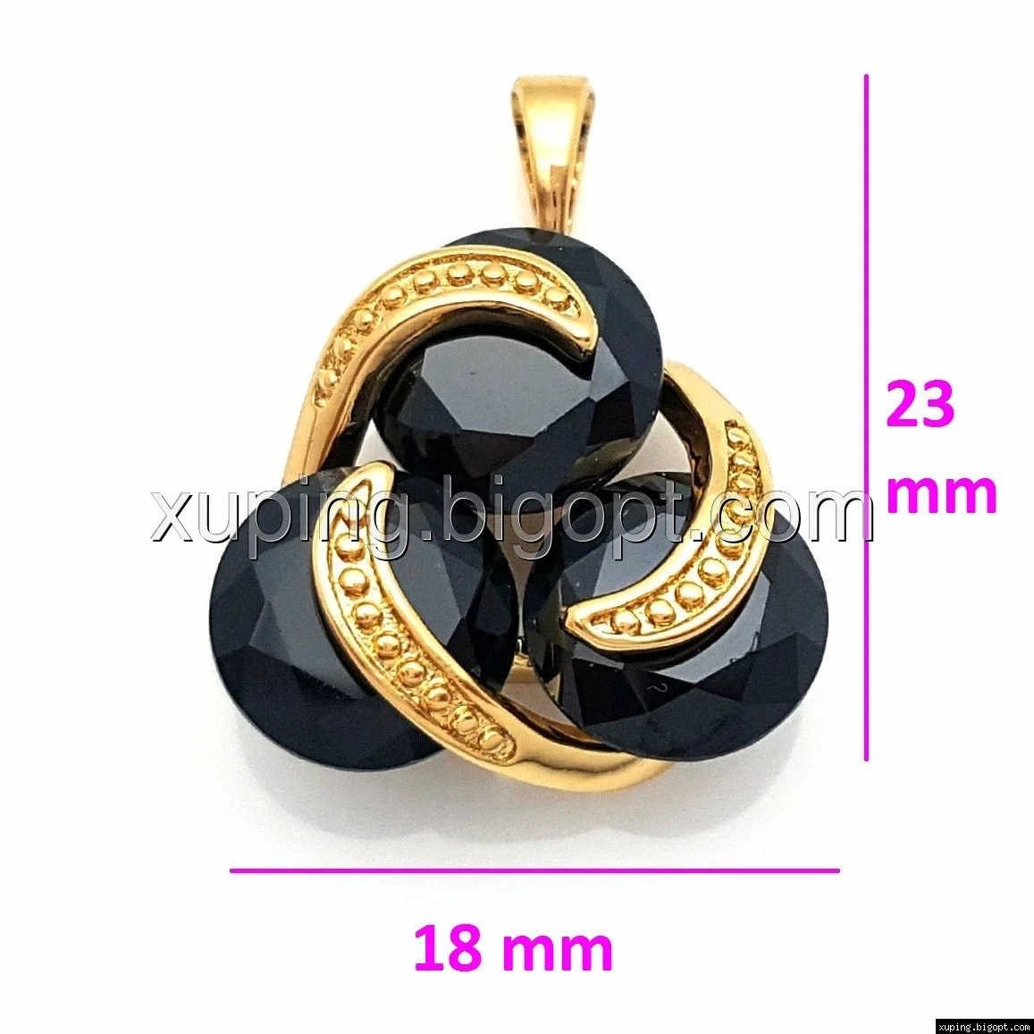 Кулон позолоченный, Три Черных циркония, Xuping