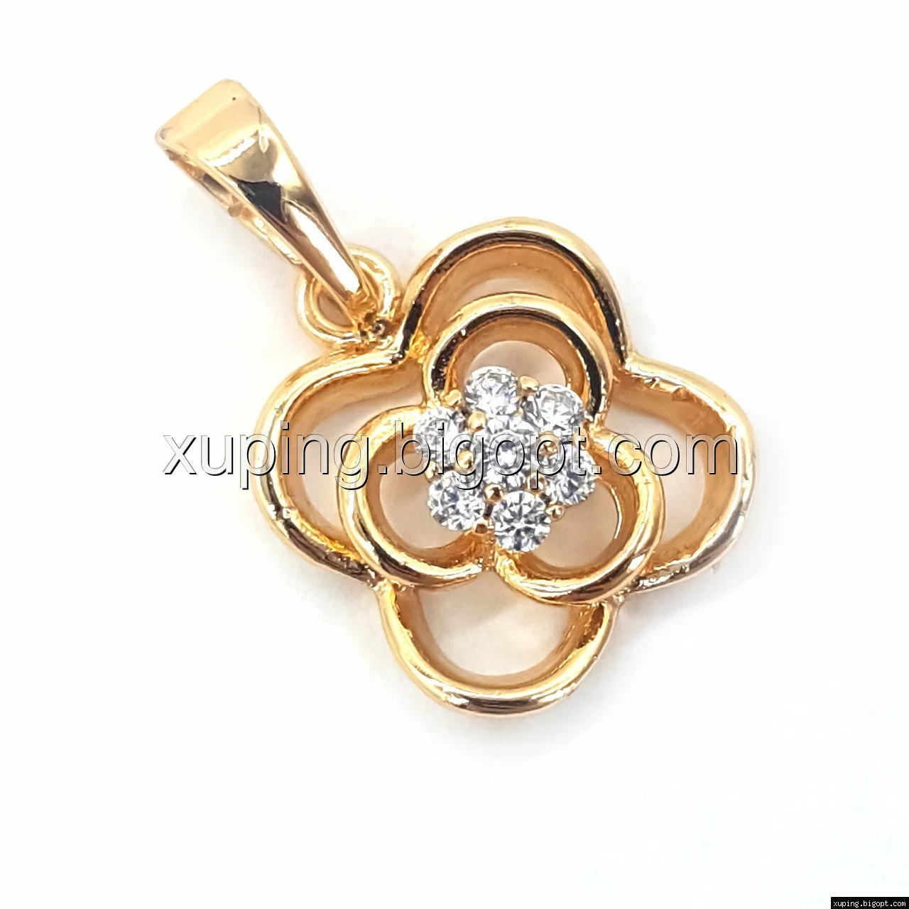 Кулон позолоченный, Цветок с цирконием