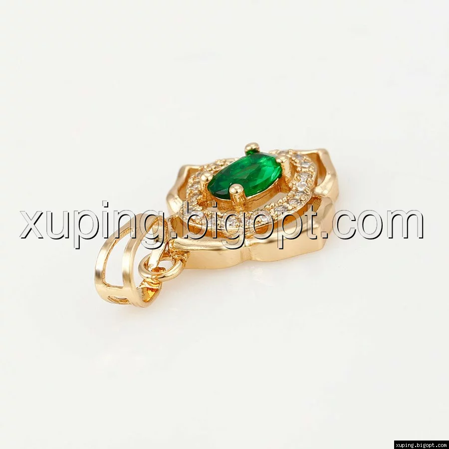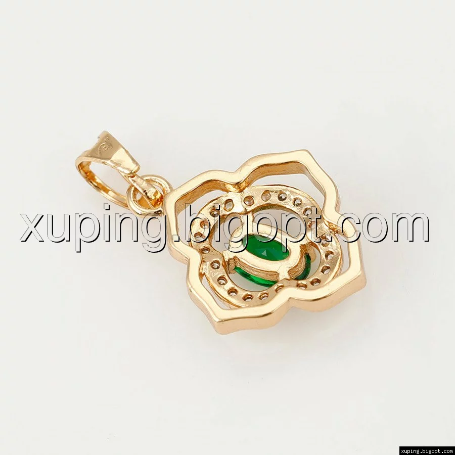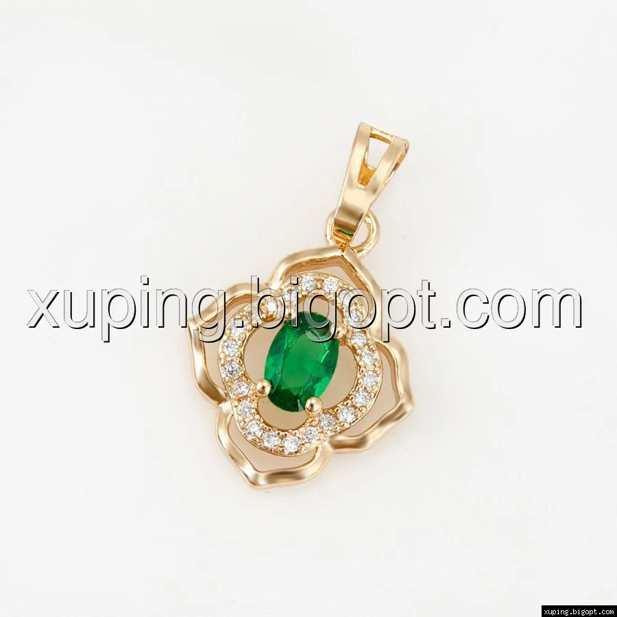Кулон позолоченный, Цветок с зеленым цирконием