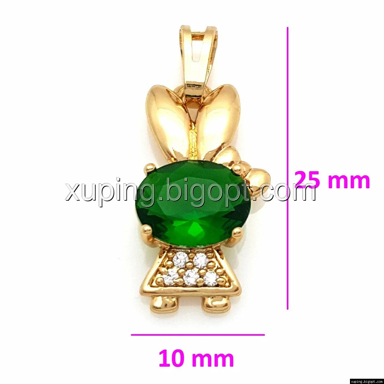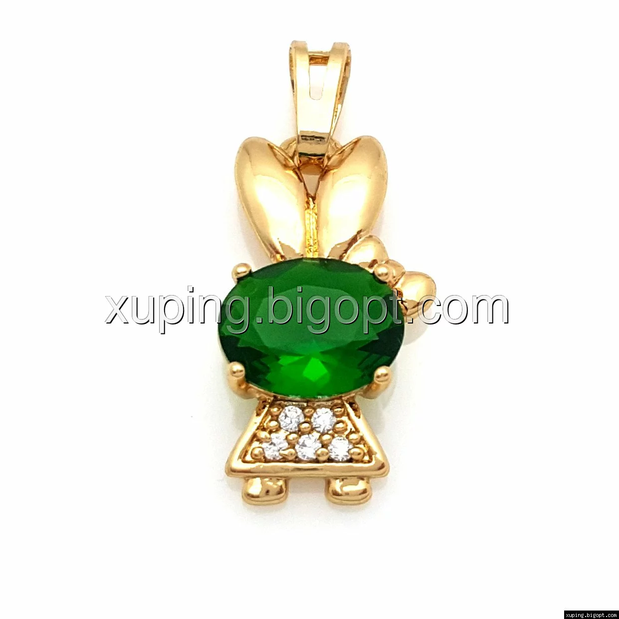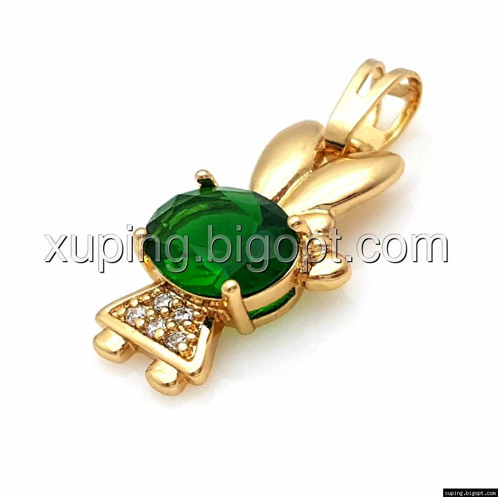 Кулон позолоченный, Зая со вставкой зеленого циркония, Xuping
