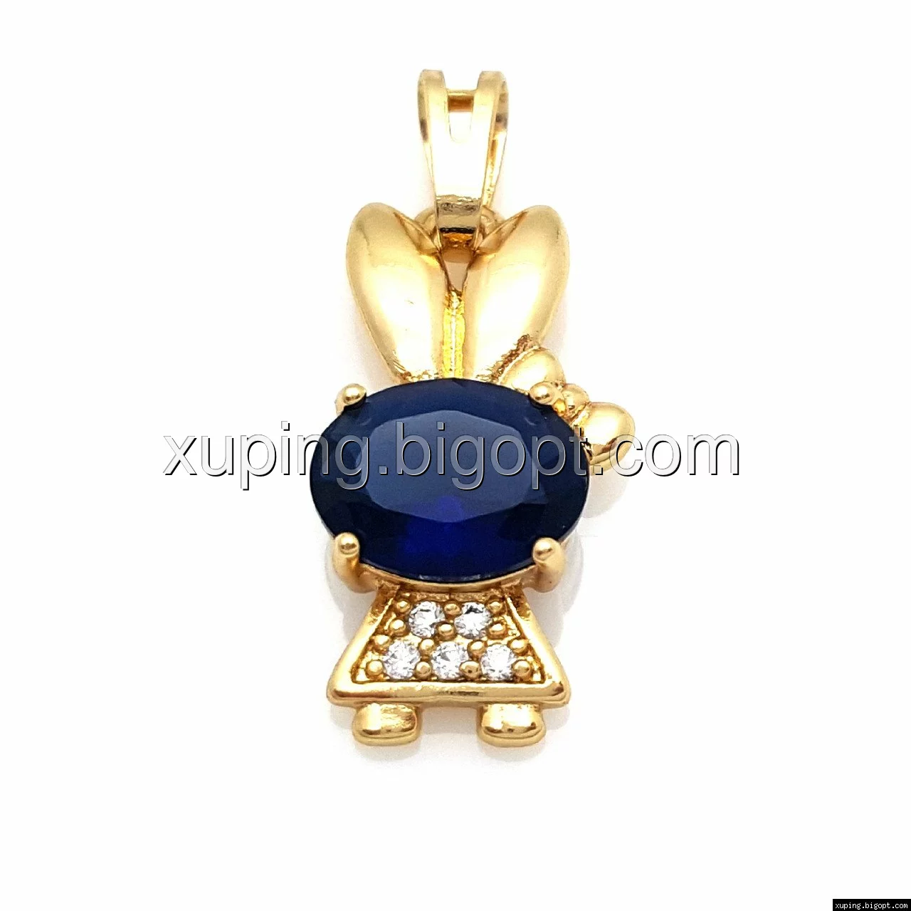 Кулон позолоченный, Зайка, с синим цирконием