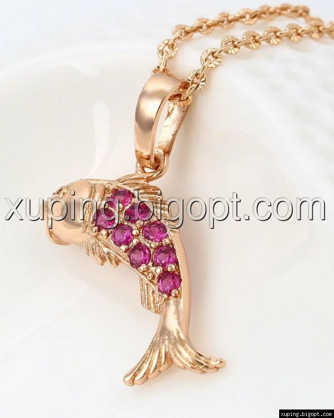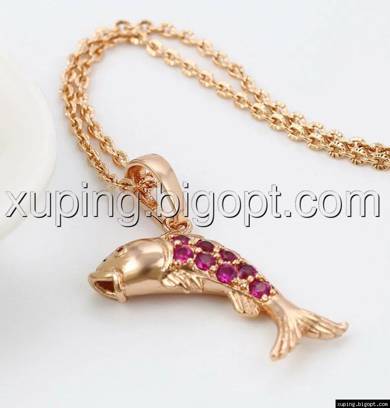 Кулон позолоченный, Золотая Рыбка, с рубиновым цирконием