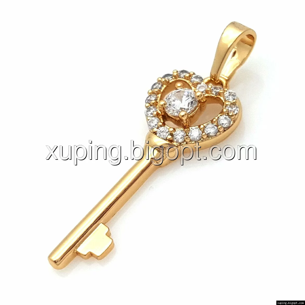 Кулон позолоченный, Золотой Ключик, со вставками циркония