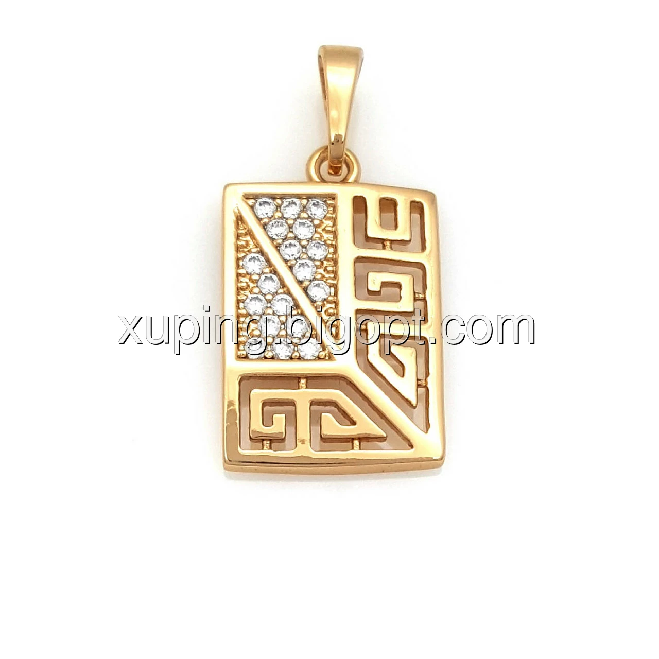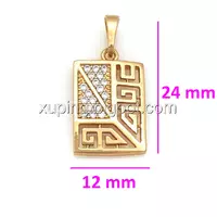 Кулон Прямоугольник с греческим узором и камнями, позолота