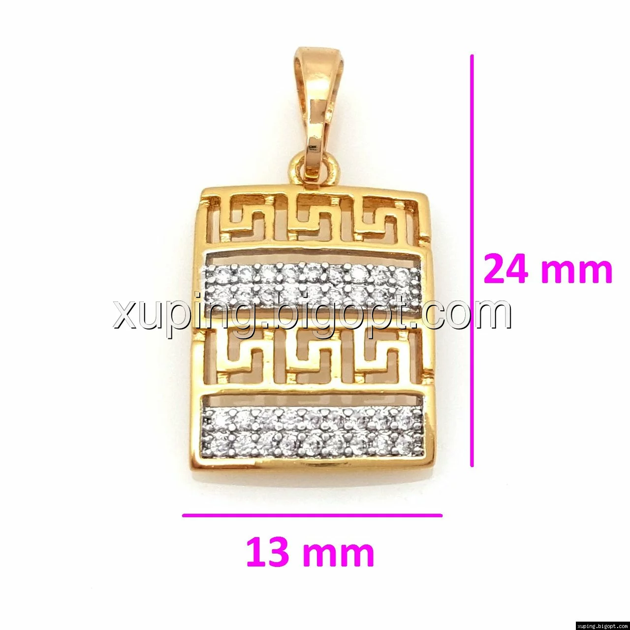 Кулон Прямоугольник, с россыпью камней и греческим рисунком, позолота+родий