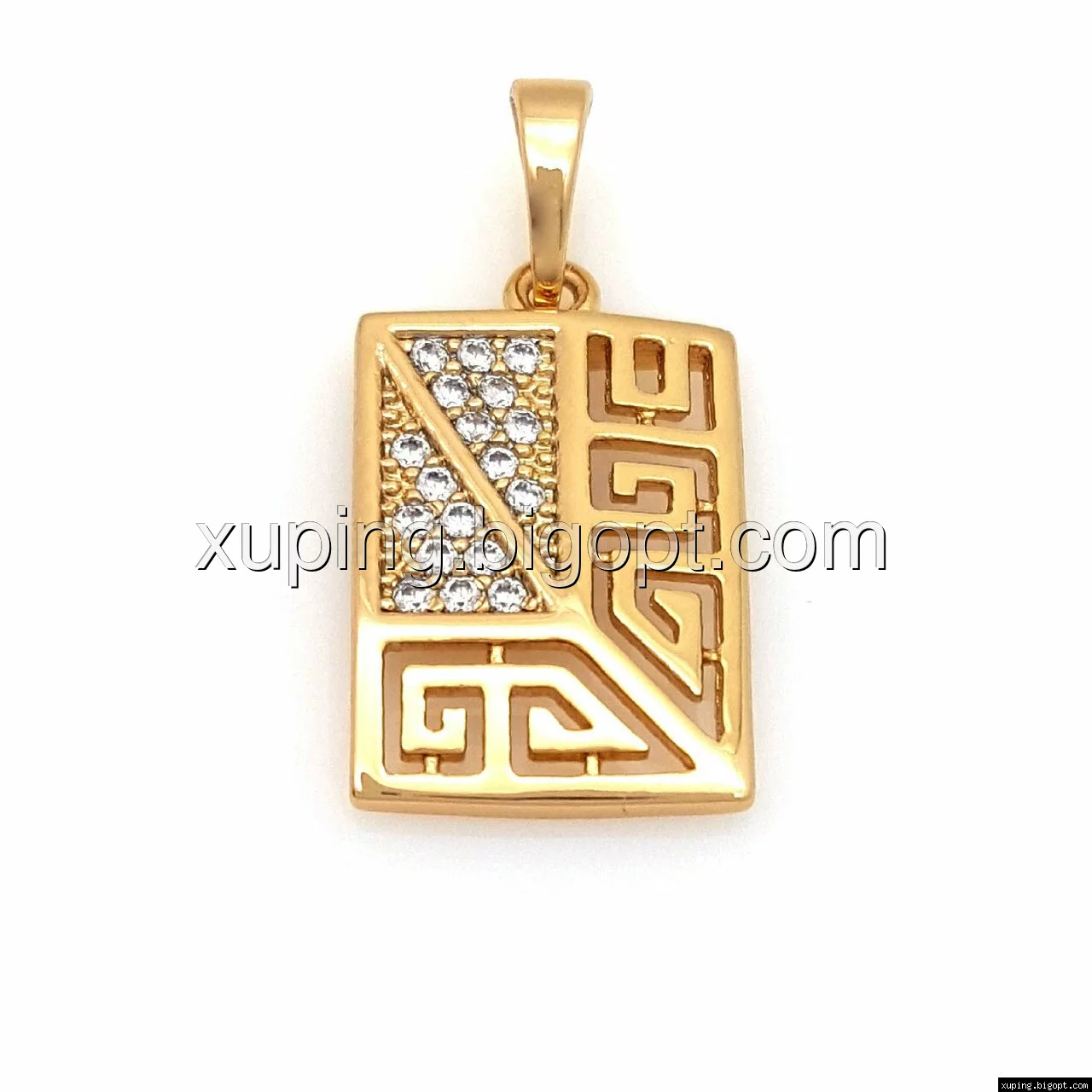 Кулон Прямоугольник с цирконием и греческим рисунком, позолота