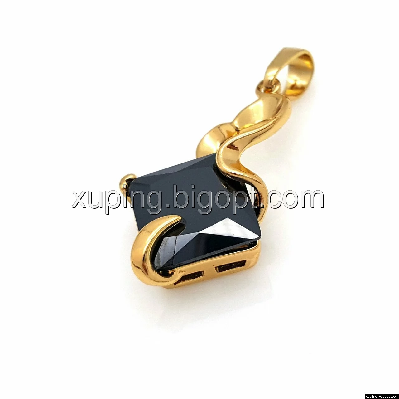 Кулон Ромб с черным цирконием, позолота Xuping